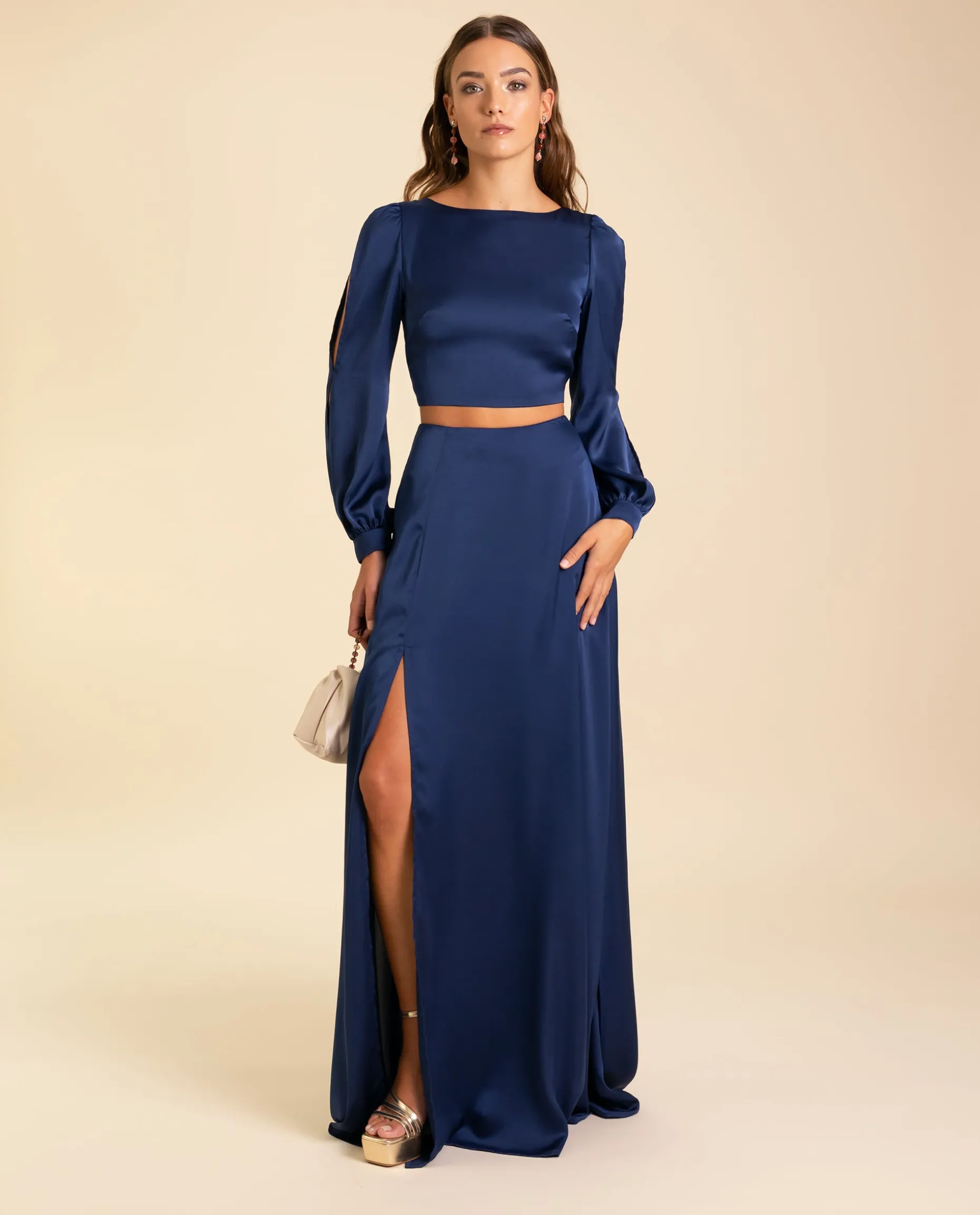 Esta blusa nos parece la mejor opción para hacerte con un dos piezas de invitada muy elegante. La blusa tiene un diseño muy favorecedor, de escote redondo con la espalda abierta que se ajusta perfectamente a ti con una lazada. Confeccionada en un tejido azul satinado, esta blusa destaca por sus mangas abiertas desde el hombro hasta la muñeca. Para una ocasión especial, evento o fiesta, con esta blusa tan especial vas a conseguir elevar cualquier look! Elígela ahora y prueba a combinarla con la Falda Mrs. Vallejo para conseguir el match perfecto.
