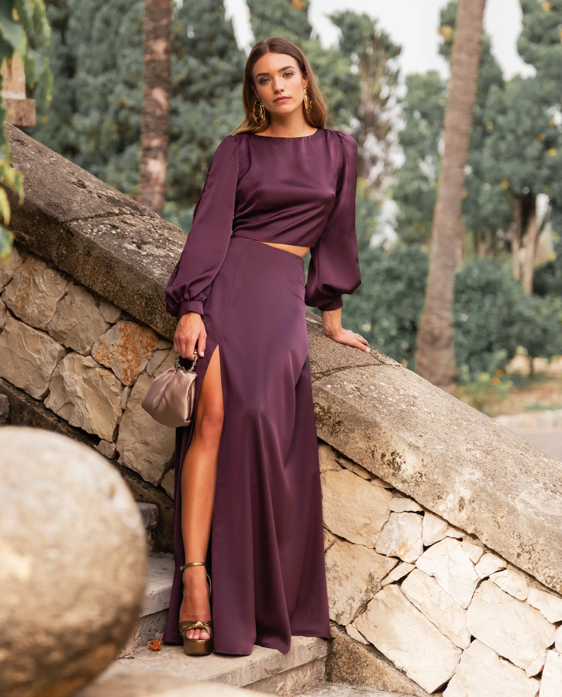 Esta blusa nos parece la mejor opción para hacerte con un dos piezas de invitada muy elegante. La blusa tiene un diseño muy favorecedor, de escote redondo con la espalda abierta que se ajusta perfectamente a ti con una lazada. Confeccionada en un tejido berenjena satinado, esta blusa destaca por sus mangas abiertas desde el hombro hasta la muñeca. Para una ocasión especial, evento o fiesta, con esta blusa tan especial vas a conseguir elevar cualquier look! Elígela ahora y prueba a combinarla con la Falda Mrs. Vallejo para conseguir el match perfecto.