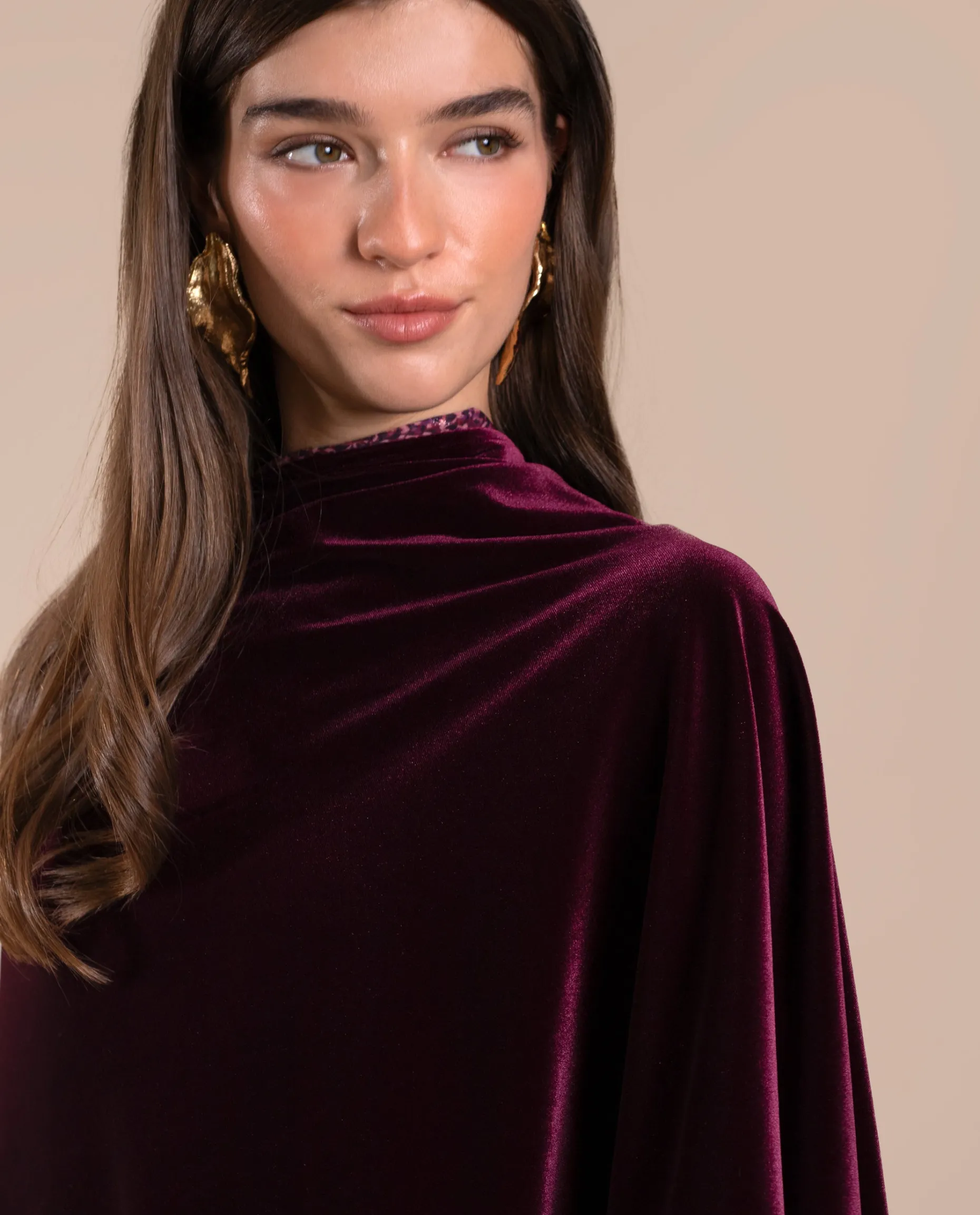 Uno de los complementos más buscados por los las invitadas de otoño-invierno. Esta capa de invitada aterciopelada, muy agradable al tacto, está unida y es el complemento perfecto para elevar tus looks más elegantes. Es muy agradable al texto y el color burdeos además de ser muy favorecedor, esta temporada es todo un must have.