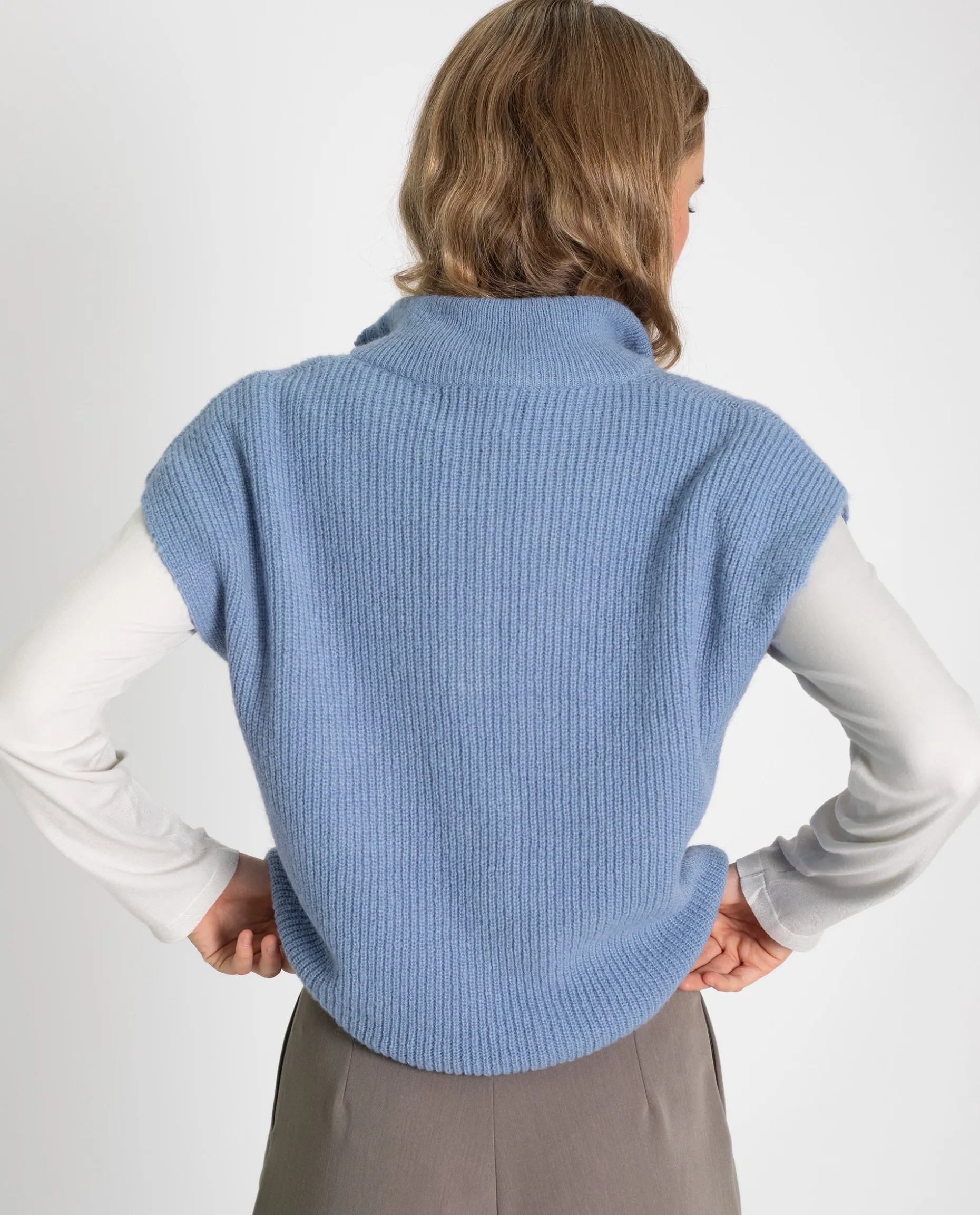 Los chalecos son la tendencia de la temporada y se han hecho un hueco en nuestra colección porque nos flipa cómo quedan!!๐”ฅ Nuestros diseños son originales, todos surgen desde 0 por lo que este chaleco es único. Está confeccionado en un punto acanalado calentito muy cómodo y agradable en azul claro súper favorecedor y fácil de combinar. Es un diseño con cuello alto y cremallera media, uno de los más buscados para darle estilo a tus looks de diario. Gracias a su patrón un poco oversize sentirás que está hecho para ti.โค๏ธ
