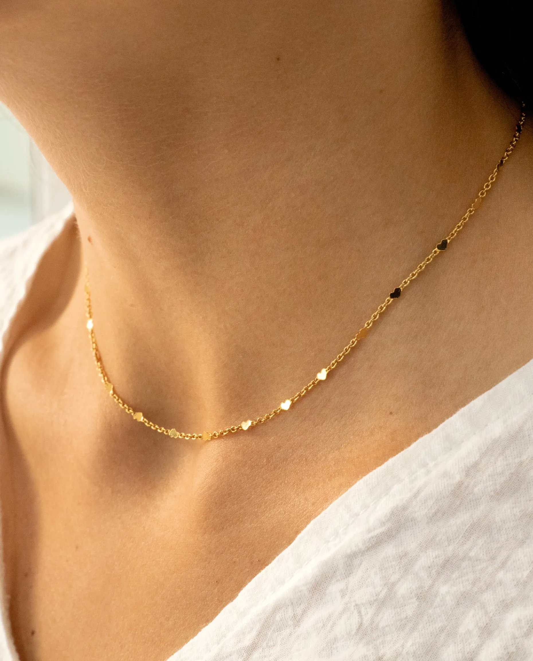 Un collar con motivos de corazones, ideal para ponerte en tu día a día. El diseño es una cadena fina y ligera para que puedas llevarla sóla o junto a otros collares en dorado. Tiene un brillo muy especial gracias al baño de oro, con el detalle del grabado THE-ARE que lo hace único. Es una joya que te acompañará durante mucho tiempo, un regalo perfecto para estas navidades!