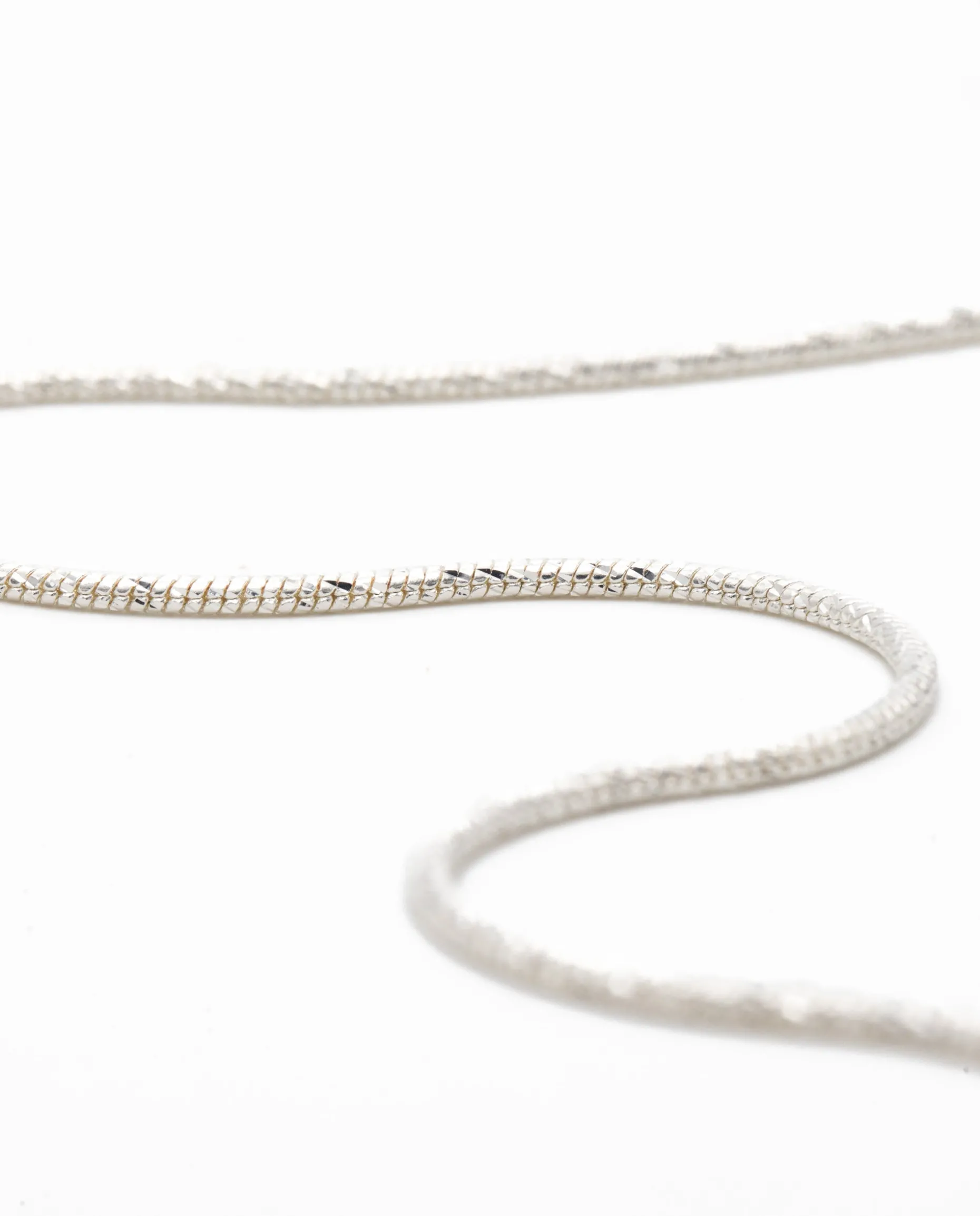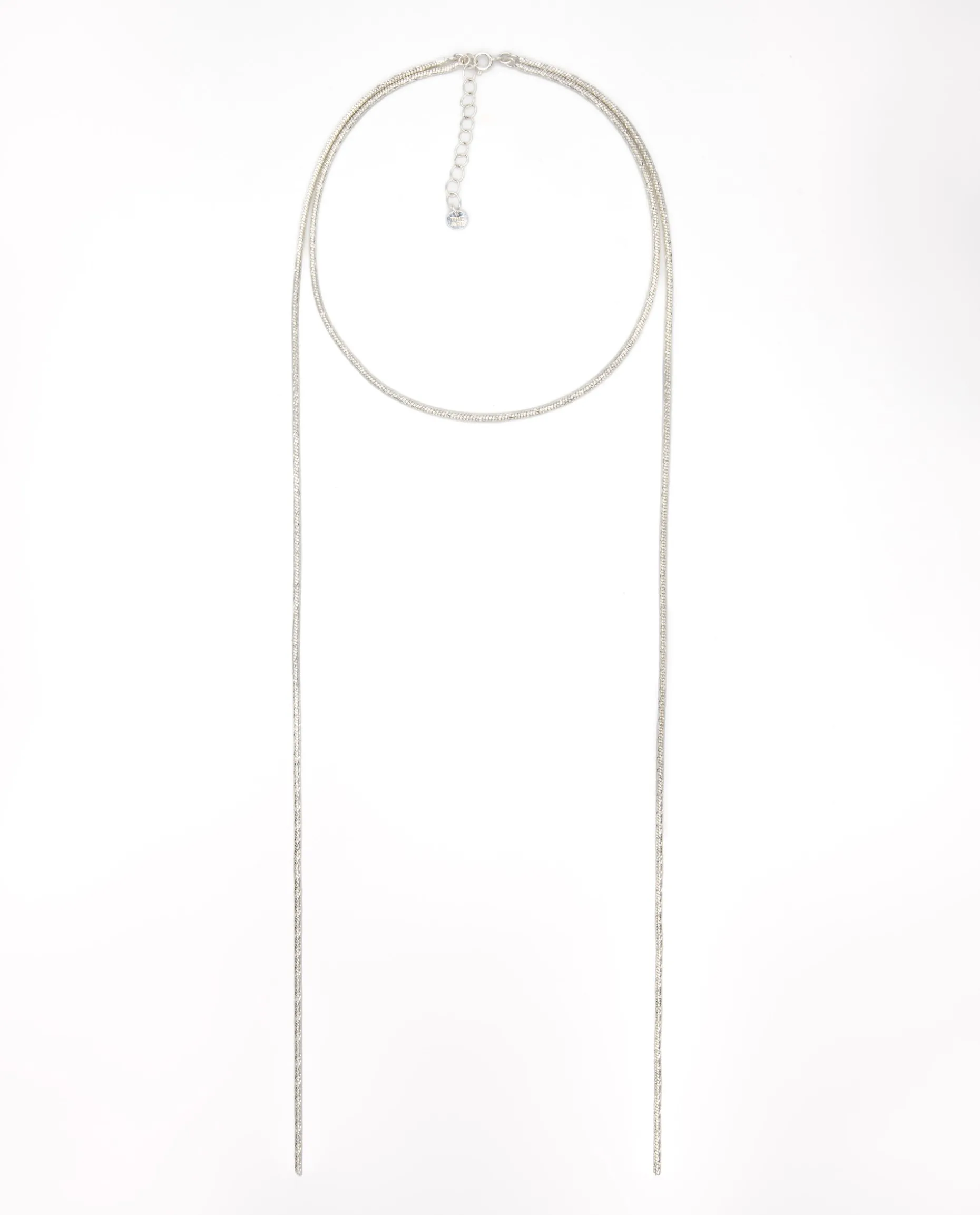 Un collar fino con cadenas largas diamantadas con mucho brillo. Bañado en Plata de Ley 925, este collar estilo bufanda es perfecto para lucir en ocasiones especiales y elevar cualquier look.