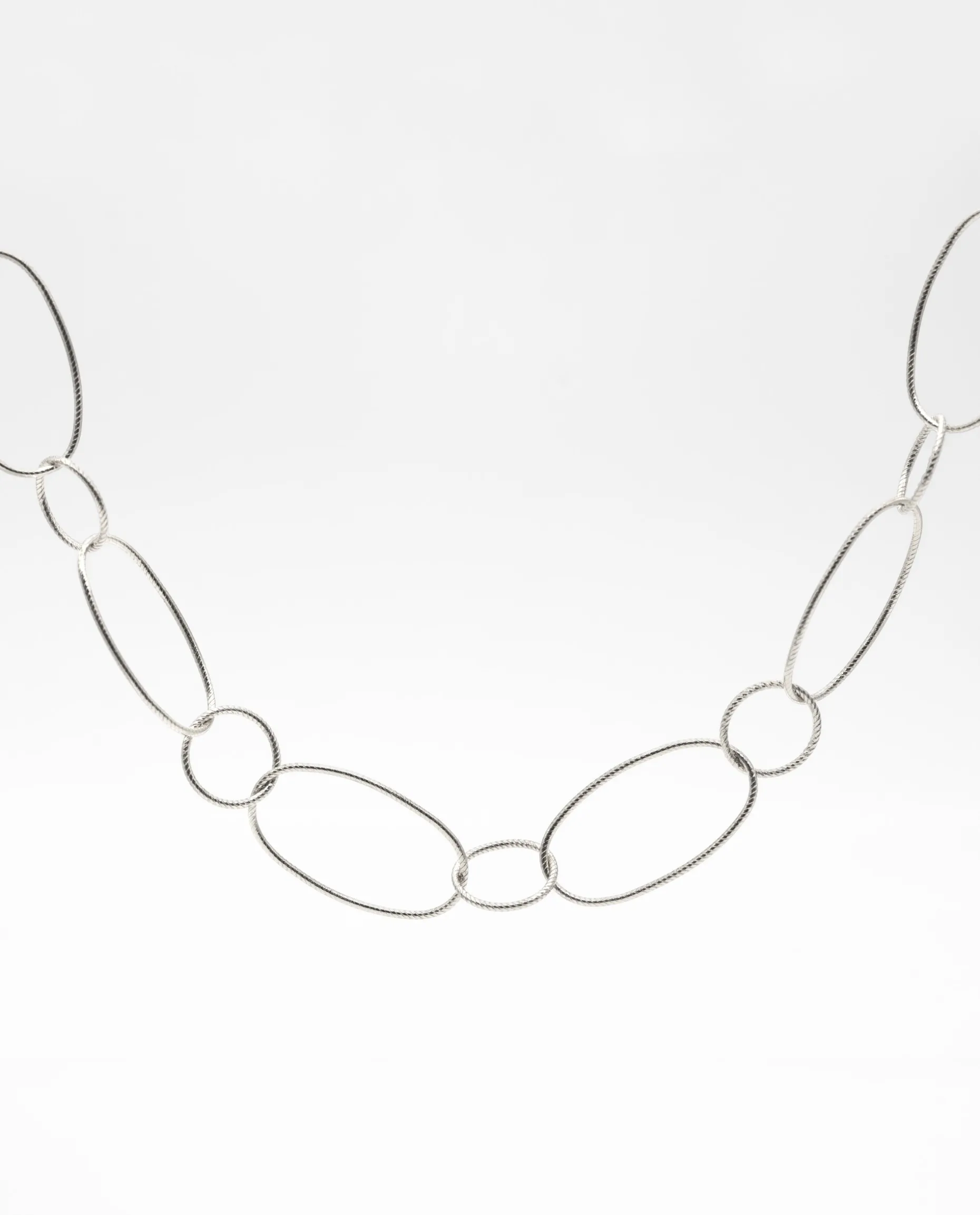 Un collar tan versátil como elegante. Es uno de los diseños tendencia y este va a volar! Está compuesto por eslabones ovalados y redondos con textura trenzada y completan tu look lleves la prenda que lleves. Gracias a su cierre lo puedes ajustar a cualquier eslabón de la cadena y llevarlo de diferentes formas.
