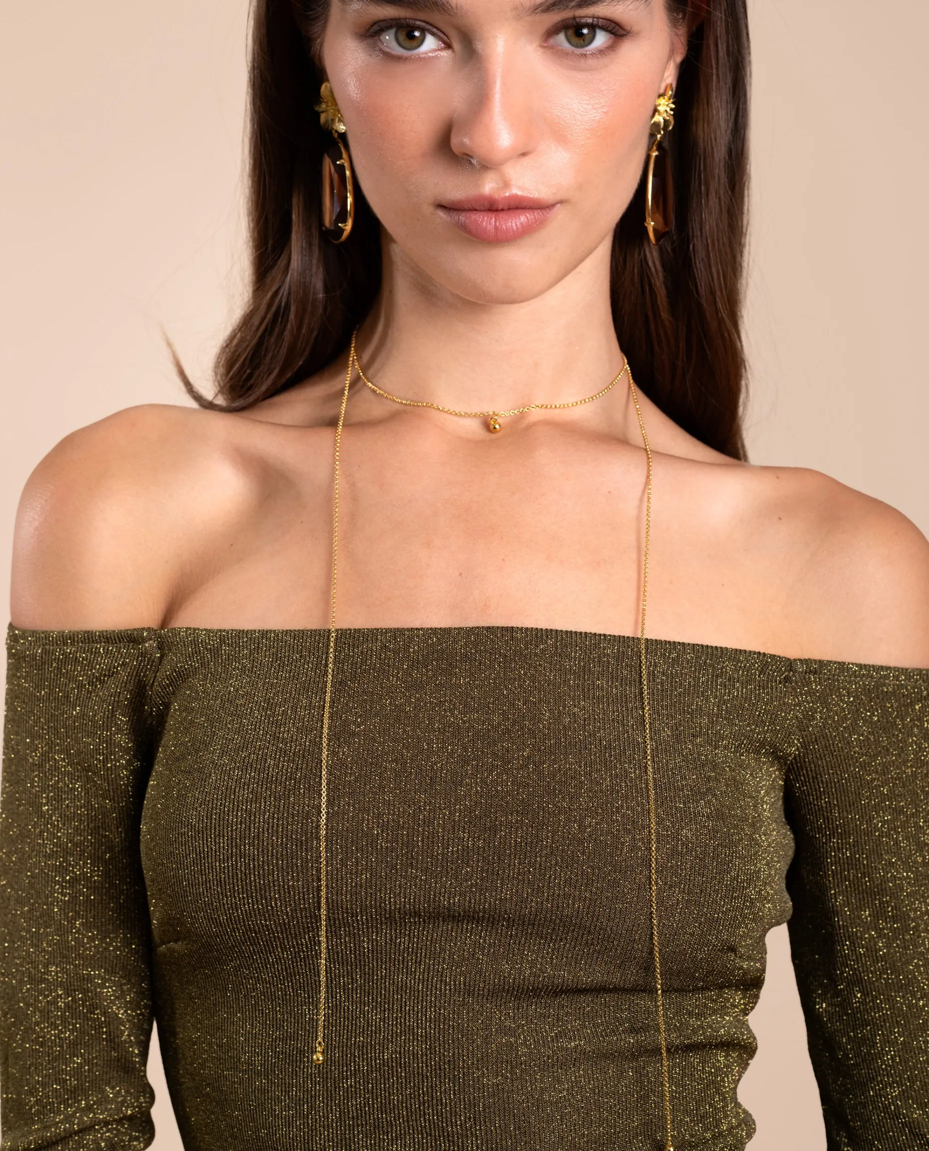 Una de las tendencias de esta temporada son los escotes en la espalda, pero si además lo combinas con el Collar River conseguirás un look para arrasar.๐”ฅ Es un collar largo con una cadena dorada que puedes regular a la altura que más te guste y con el detalle de pequeñas bolitas doradas.