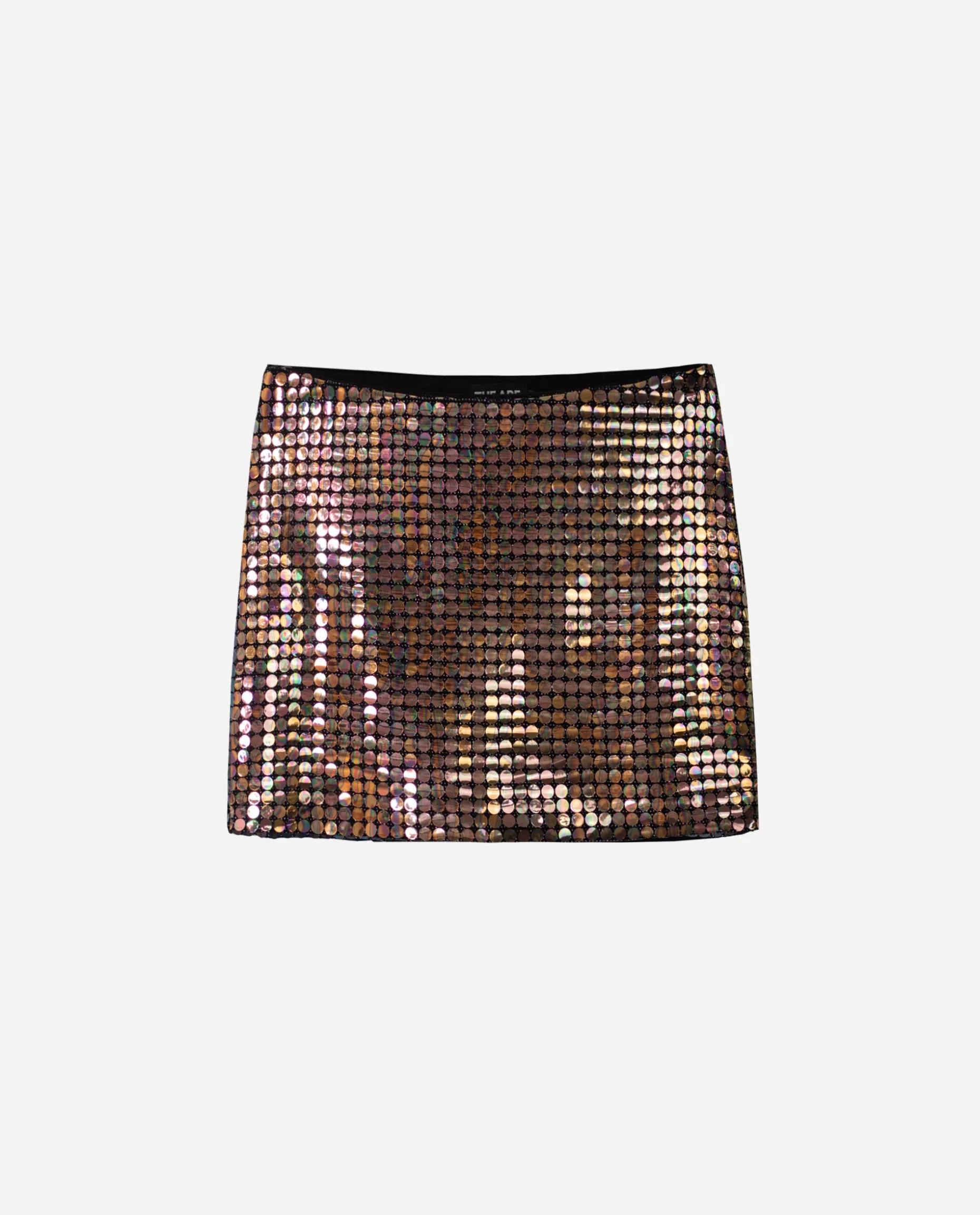 Atrévete con una de las faldas más buscadas de la temporada! Es una mini falda cañera, con detalles muy especiales para que sea la protagonista de tu look de fiesta. El tejido es un punto elástico con brillo, así que se adapta perfectamente a tu silueta y los brillos dorados reflejan diferentes tonalidades. Prepárate para darlo todo en tu próxima fiesta con esta mini falda de brillos!