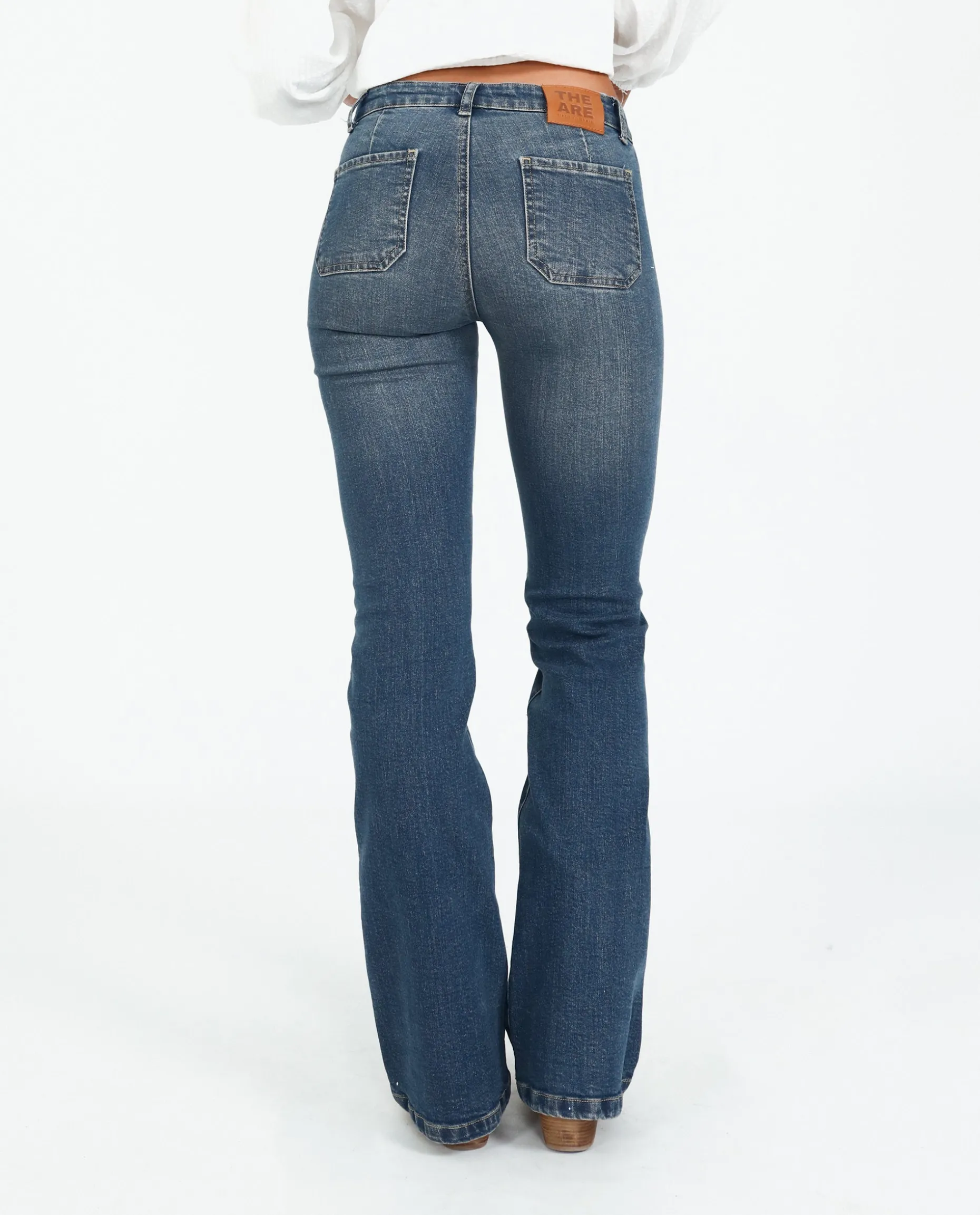 Estos pantalones largos los hemos diseñado de talle medio con bajo acampanado y el detalle de costuras centrales para un efecto visual de piernas más largas. Son unos jeans especiales, diseñados como siempre 100% en España, que arreglarán cualquier look de tu día a día. Confeccionados con algodón elástico azul efecto desgastado y con dos bolsillos vistos delanteros y traseros. Los podrás combinar de mil formas y siempre irás cómoda y con estilo con ellos!