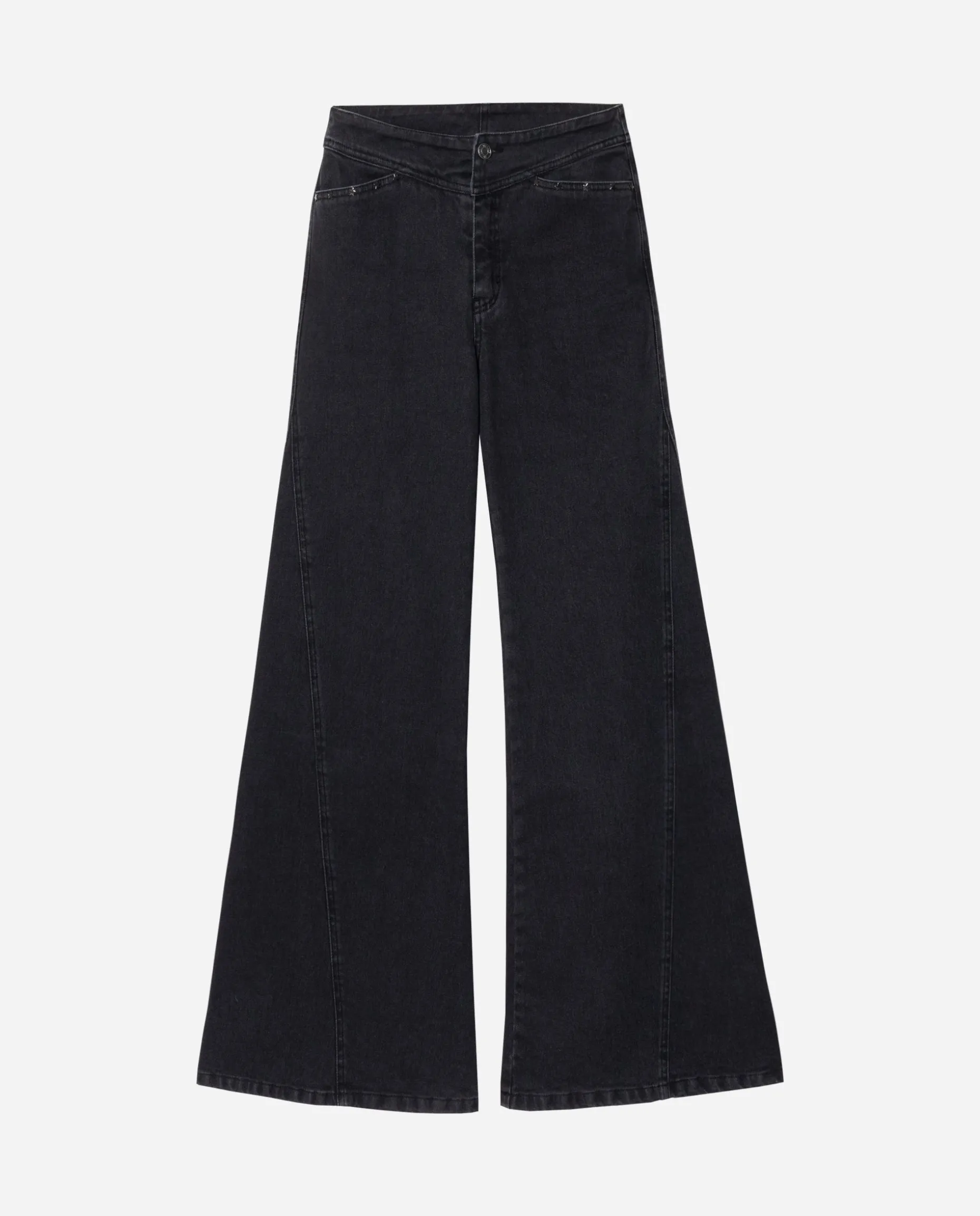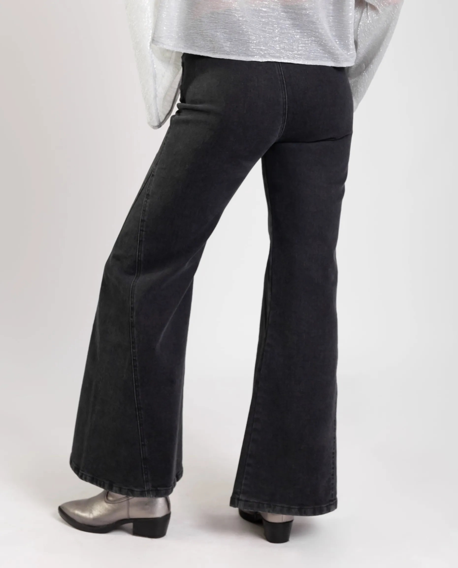 Los hemos diseñado de talle alto con el bajo acampanado y el detalle de costuras en los costados para darle amplitud. Tiene canesú delantero y trasero, así que estilizan muchísimo y tienen efecto push up. Son unos jeans especiales diseñados, como siempre, 100% en España que arreglarán cualquier look, ya sea para tu día a día o para salir de fiesta. En los bolsillos delanteros hemos añadido unos remaches de estrellas en plata para darle el toque especial. โญ