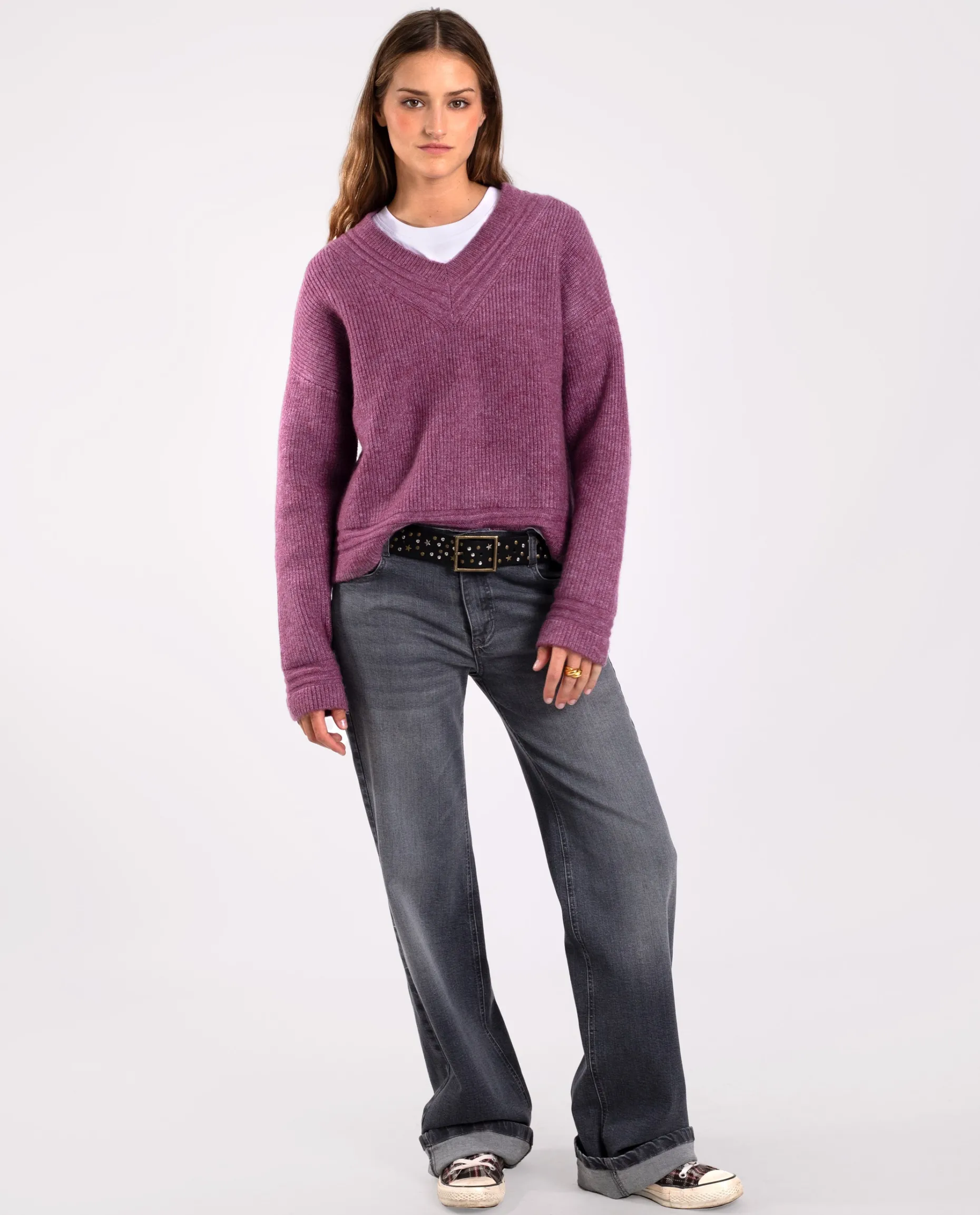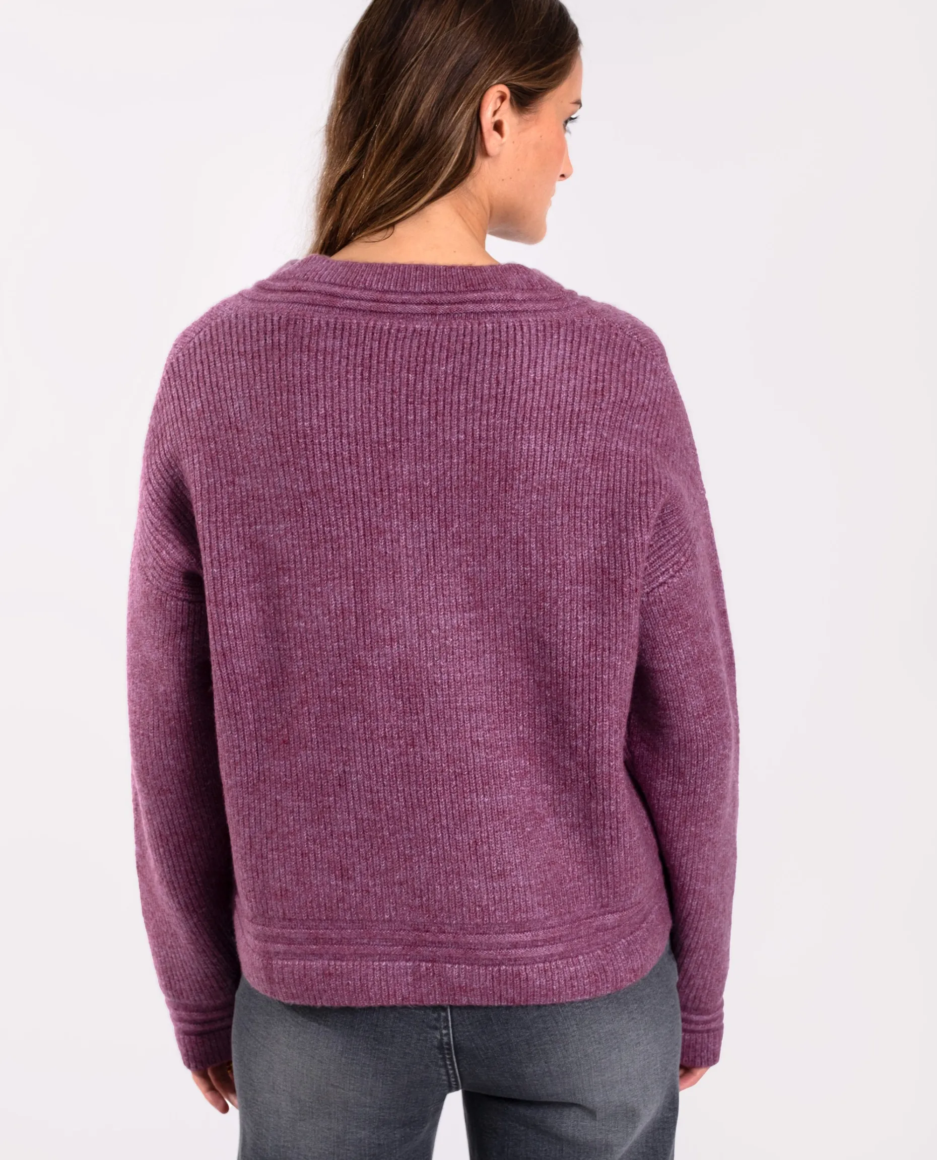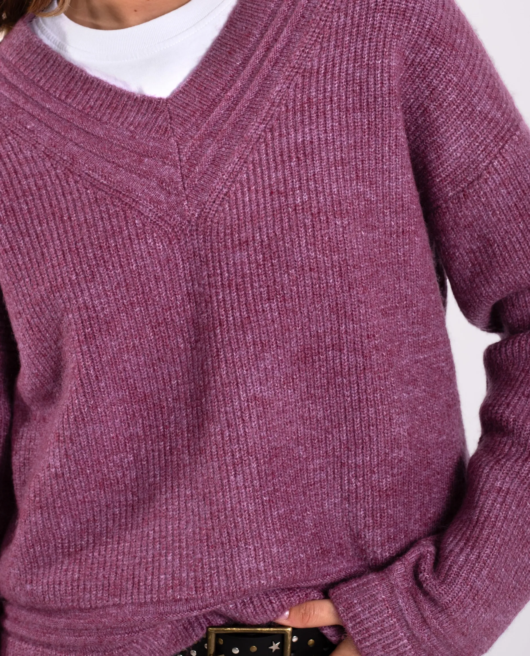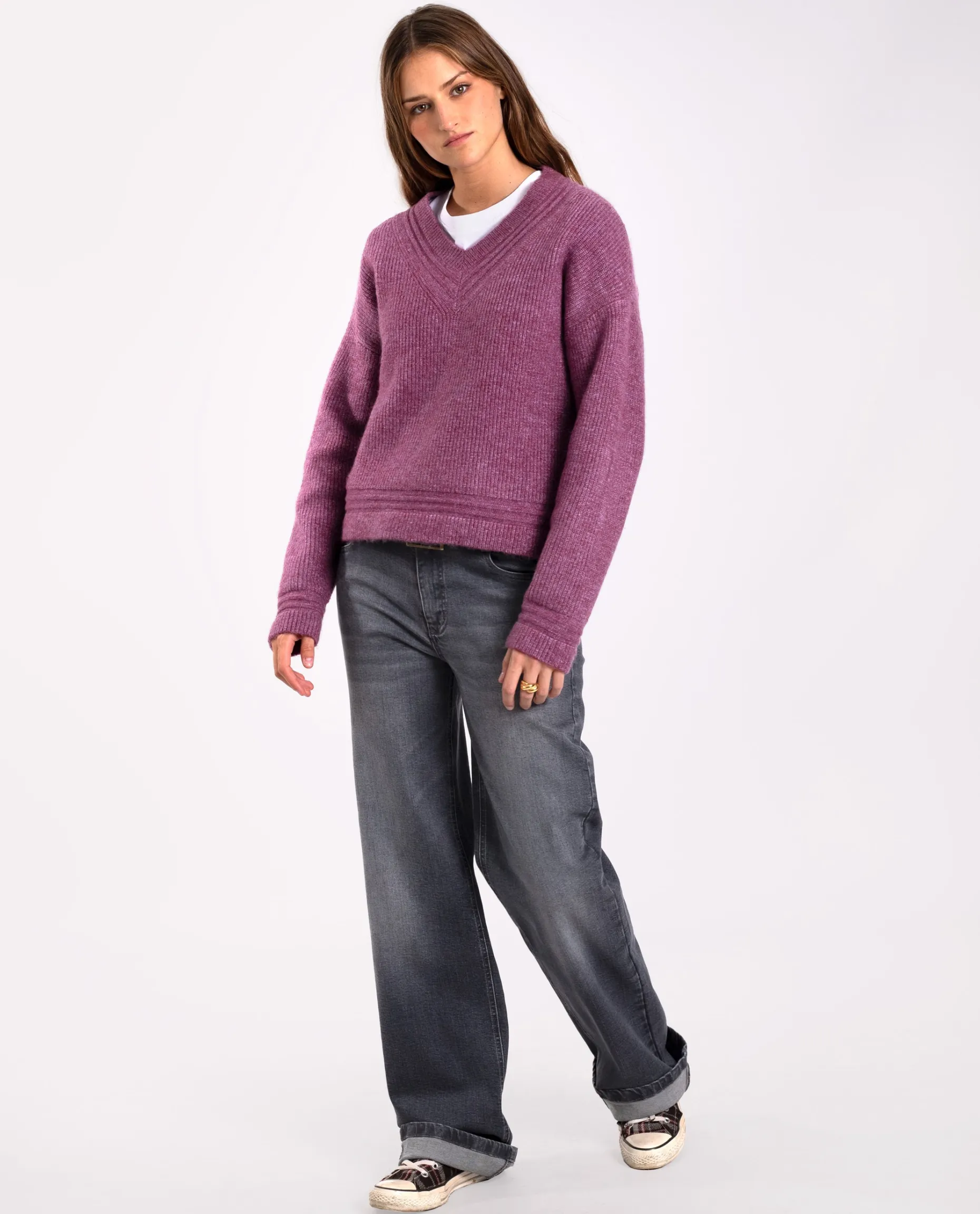 Te presentamos el jersey con el que amarás los días de frío. Hemos elegido un hilo en color ciruela que no puede ser más favorecedor, con el escote en V estilo college es un básico que no puede faltar en tu armario. Una vez que te lo pruebes no te lo querrás quitar!