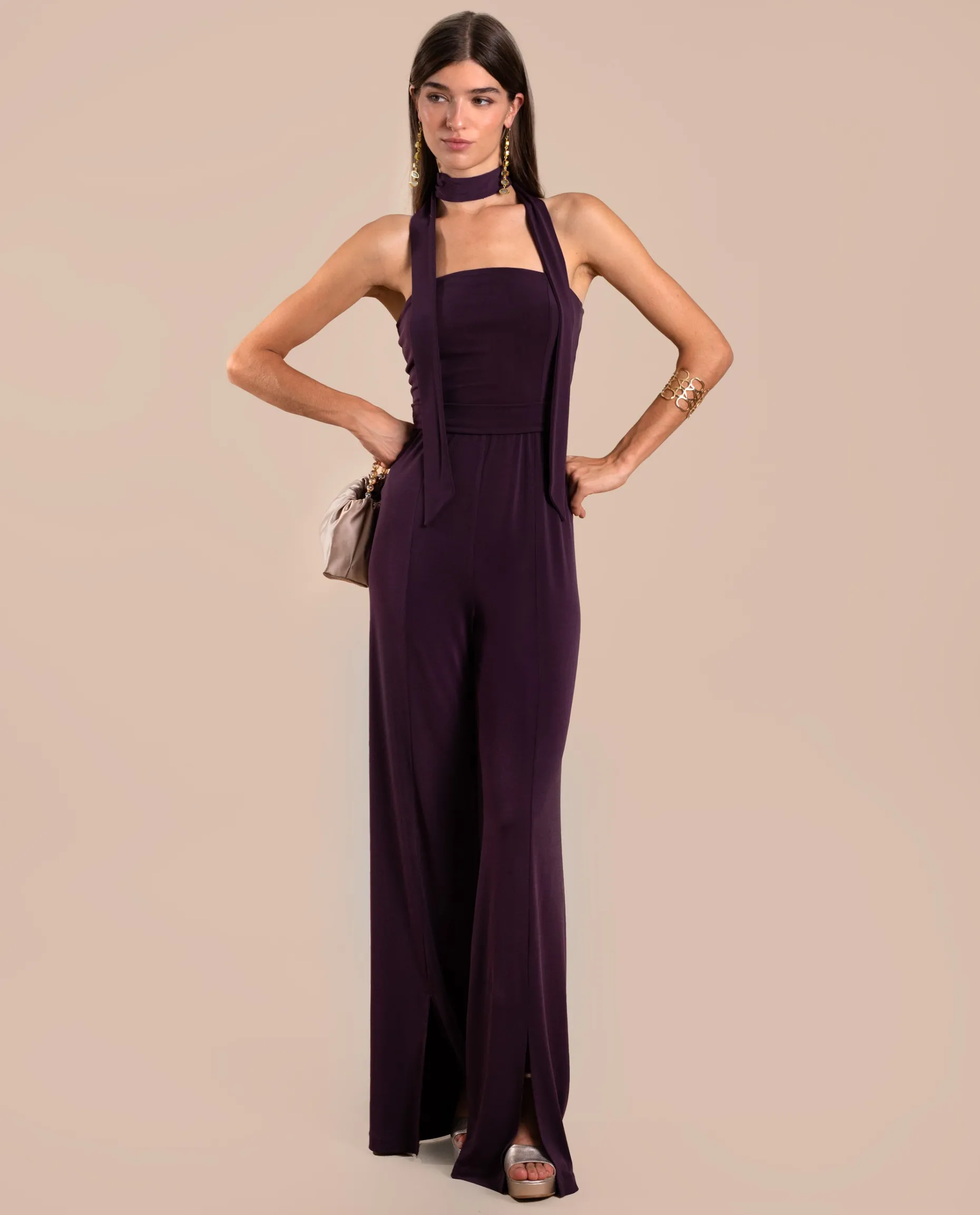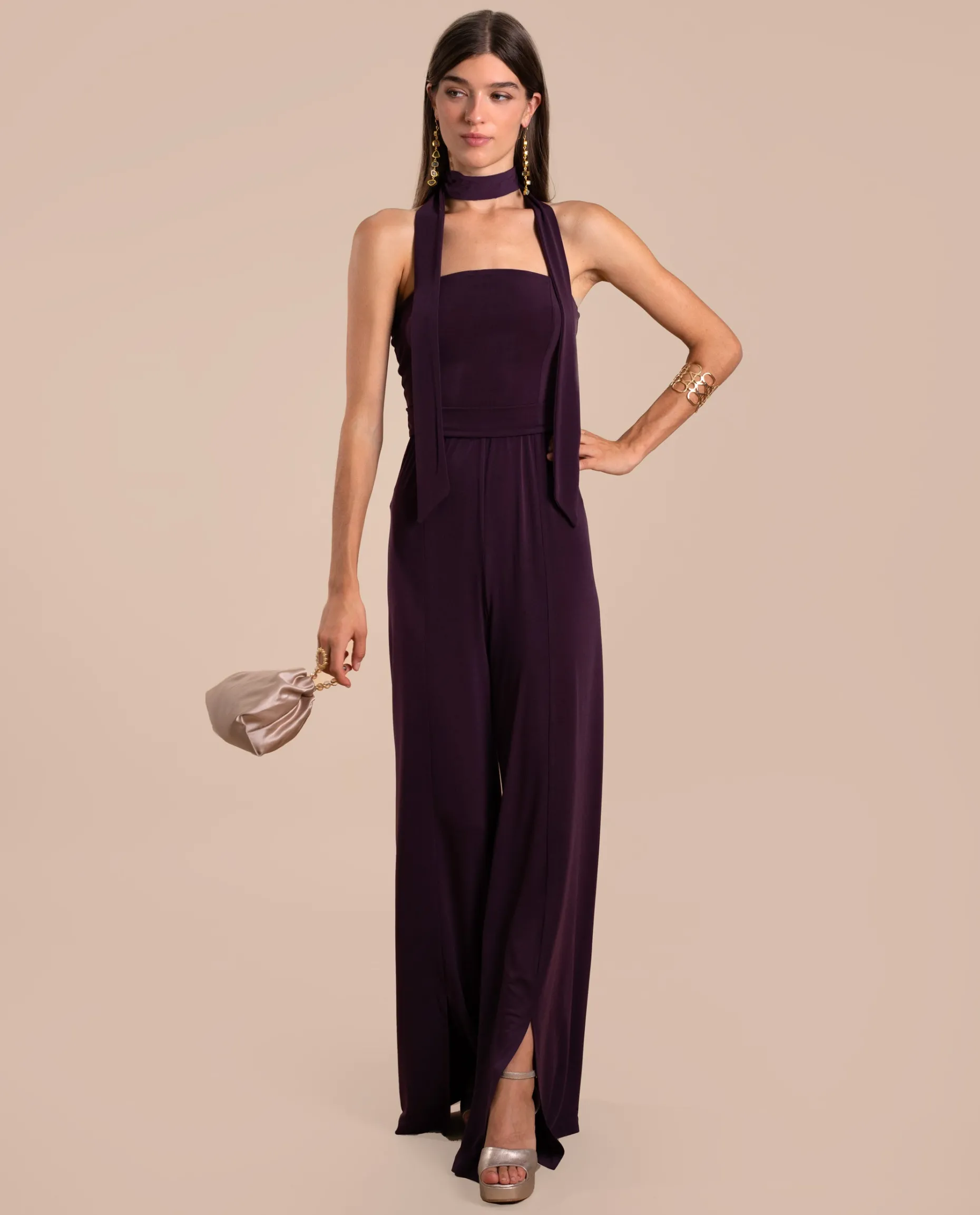 Nuestra diseñadora ha pensado en todo para que sea el mono que mejor siente: escote de palabra de honor, tejido de punto elástico para estilizar y lazada al cuello efecto fular. Sin duda, es uno de los monos elegantes que desde el primer momento nos enamoramos de él! El cuerpo es ajustado y el pantalón palazzo es talle alto efecto push up para estilizar al máximo. Lleva los hombros completamente al descubierto y lo llevarás muy cómodo porque gracias a la silicona se ajusta a la perfección. El color ciruela es súper elegante, uno de los favoritos para vestir en eventos y favorecedor para todo tipo de tonos de piel. Póntelo para tu graduación o evento con accesorios en dorado y serás la invitada perfecta.