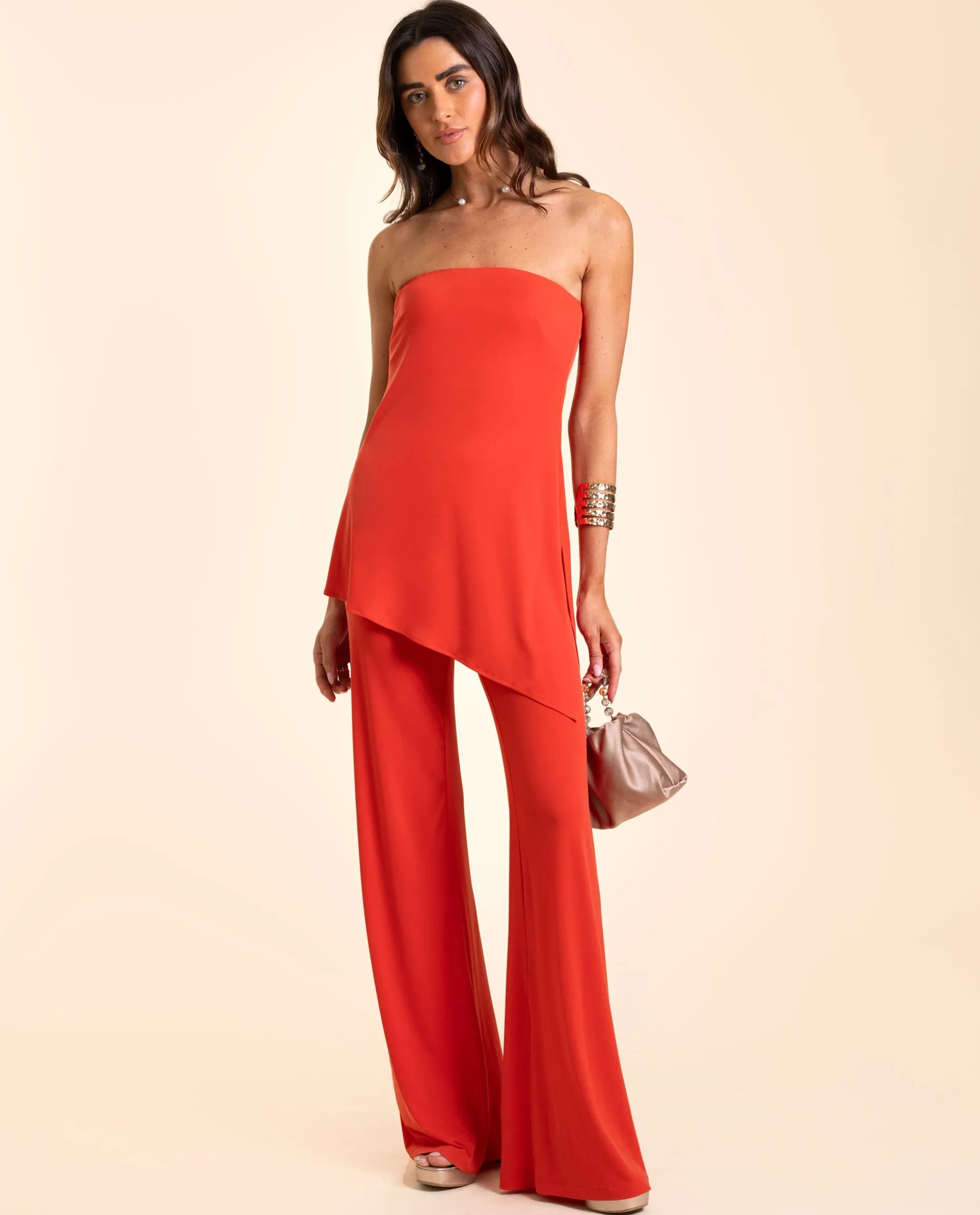 Por fin en THE-ARE el conjunto más elegante y sofisticado para ser la invitada perfecta! Compuesto por un top asimétrico entallado y un pantalón campana confeccionados en un tejido de punto con una caída preciosa. El pantalón estiliza tu figura y al ser ligeros tienen un movimiento espectacular. Son de tiro alto y tienen la cintura elástica, por lo que son muy cómodos, perfectos para hacer tu conjunto para graduación, evento o celebración.๐’—