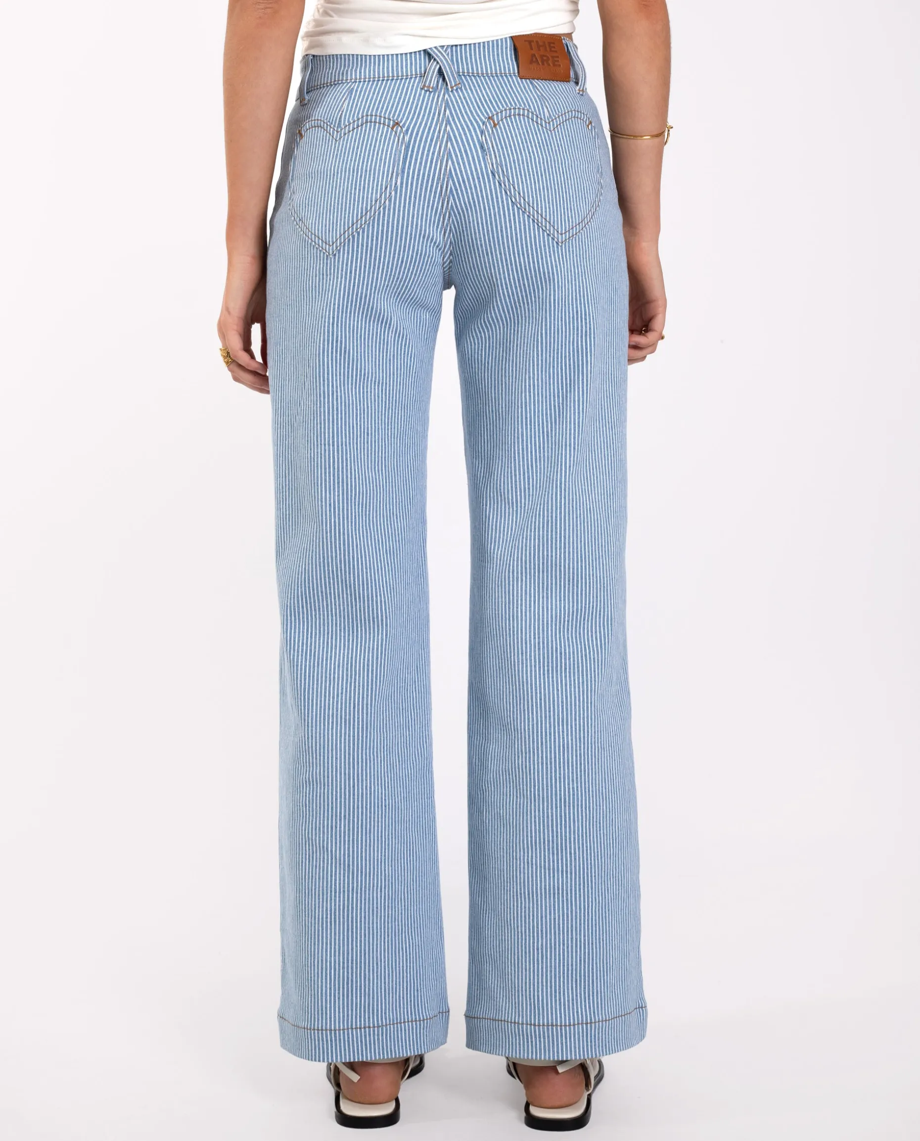 Nuestros jeans favoritos!๐ Es una de las prendas más especiales y cool de la colección, con rayas verticales blancas y azules para que combinen con todo. Son unos jeans largos de talle medio y con el detalle de los bolsillos traseros con forma de corazón y efecto push up, queda ideal. Se adaptan genial a la silueta y al ser de corte recto favorece a todas!