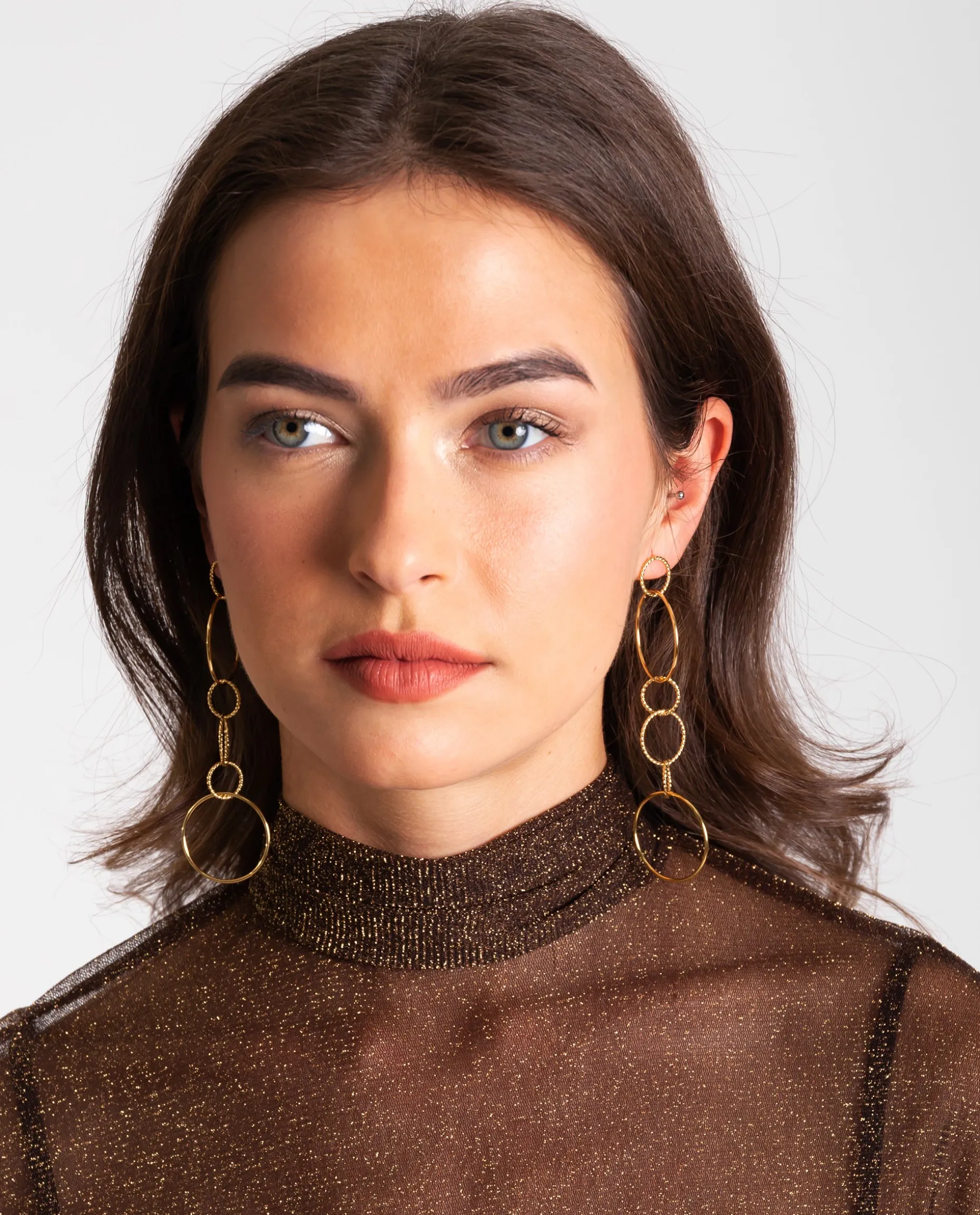 Estos pendientes largos están formados por 6 círculos entrelazados en diferentes tamaños y formas lo que lo hacen más originales. Si estás buscando la joya perfecta para agregar un toque diferente a tu look, estos aritos son los ideales, los puedes llevar tanto para el día a día como para salir de fiesta.๐ค๐ผ