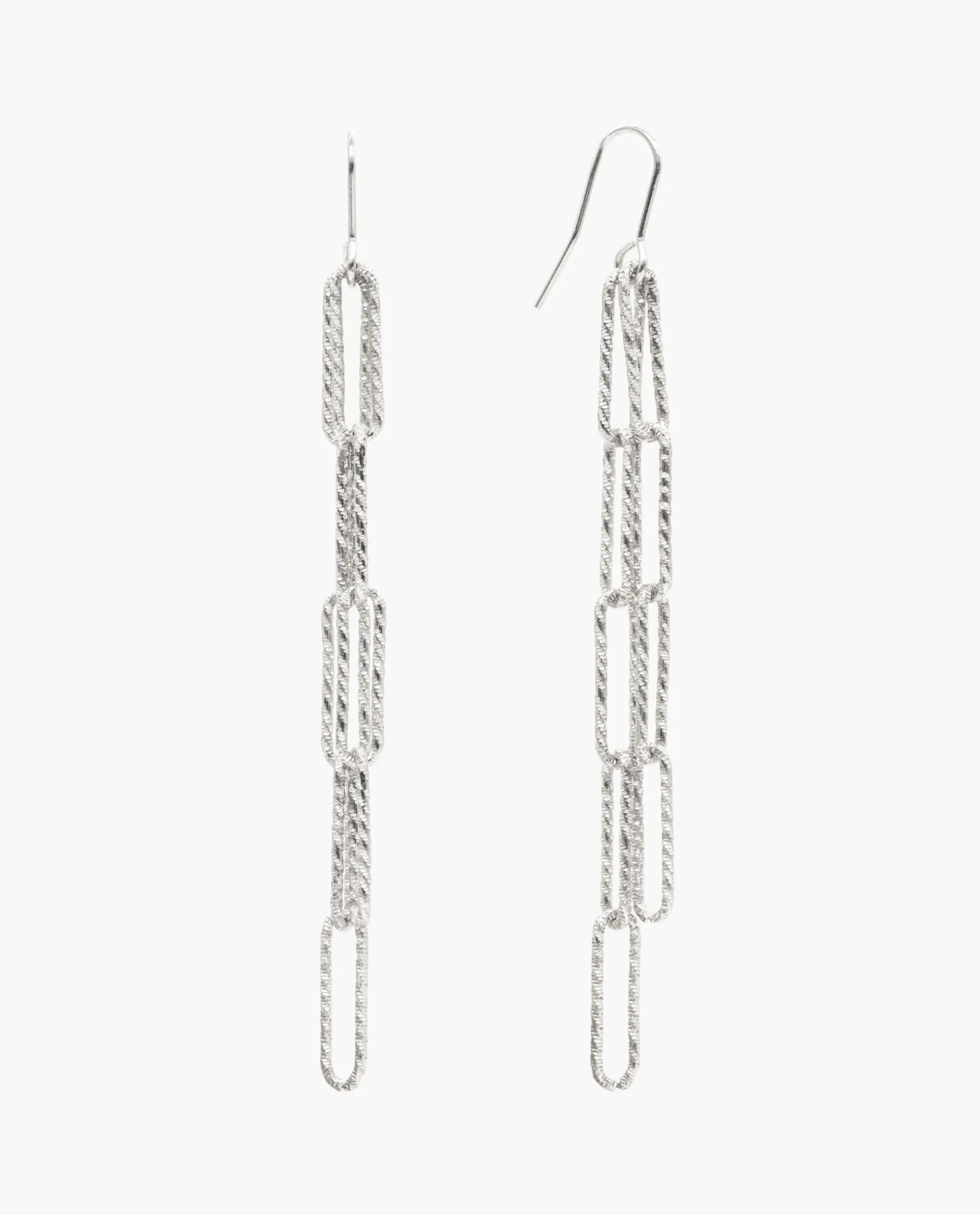 Los pendientes Sands son el centro de atención.โจ Unos pendientes largos con dos cadenas colgantes que añaden un toque elegante y fino a tus looks. Las cadenas tienen una textura rugosa diamantada, bañados en Plata de Ley 925 por lo que tienen mucho brillo. Unos pendientes perfectos para llevar en ocasiones especiales.