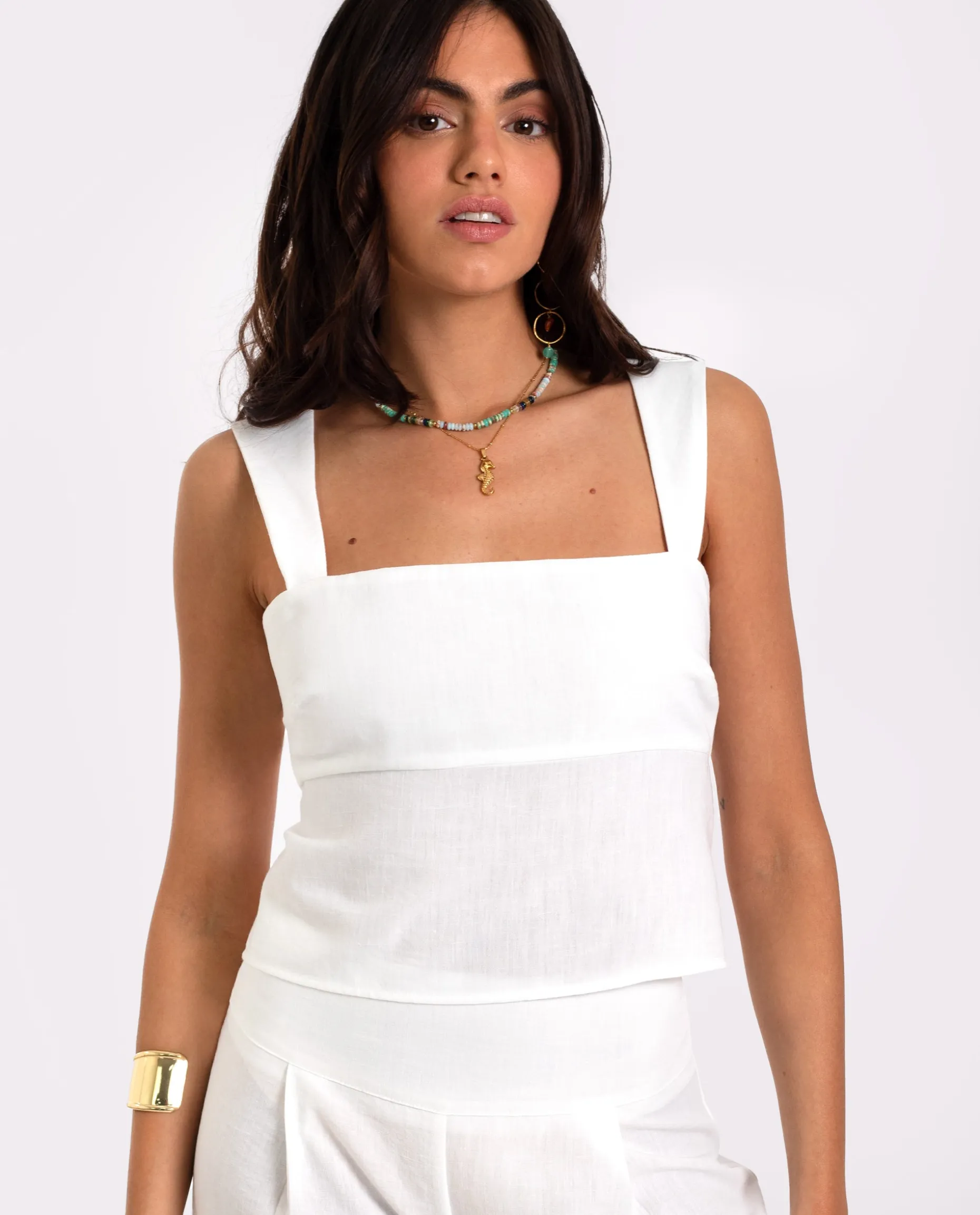 Uno de nuestros top favoritos que sabemos que no dejarás de llevar con el buen tiempo!โ€๏ธ Sienta ideal, con el cuerpo ceñido y pinzas delanteras para que entalle perfecto. El escote es recto y los tirantes se unen a la espalda quedando completamente descubierta con lazadas regulables. ¿Te atreves a llevar este total look? Nosotras ya lo tenemos!!๐