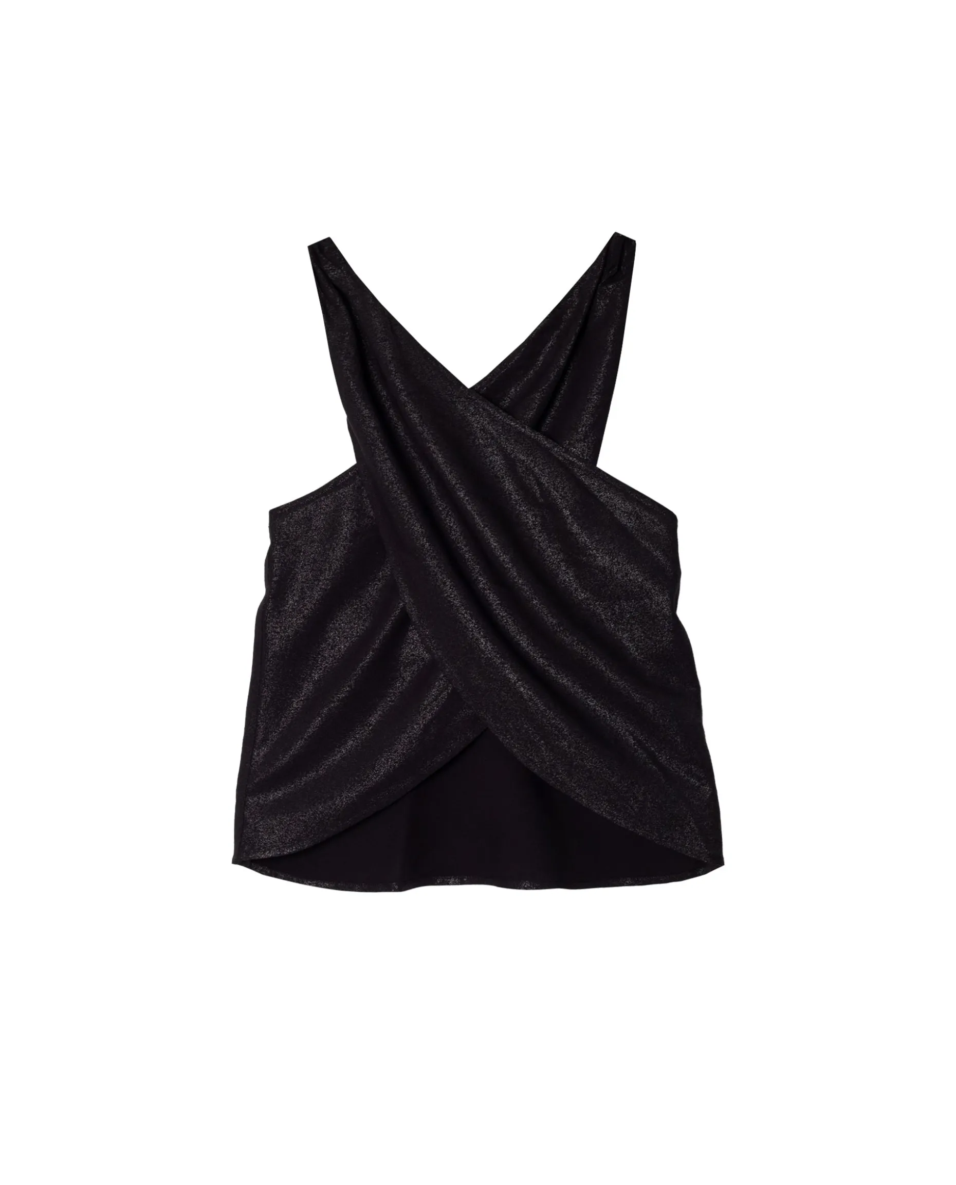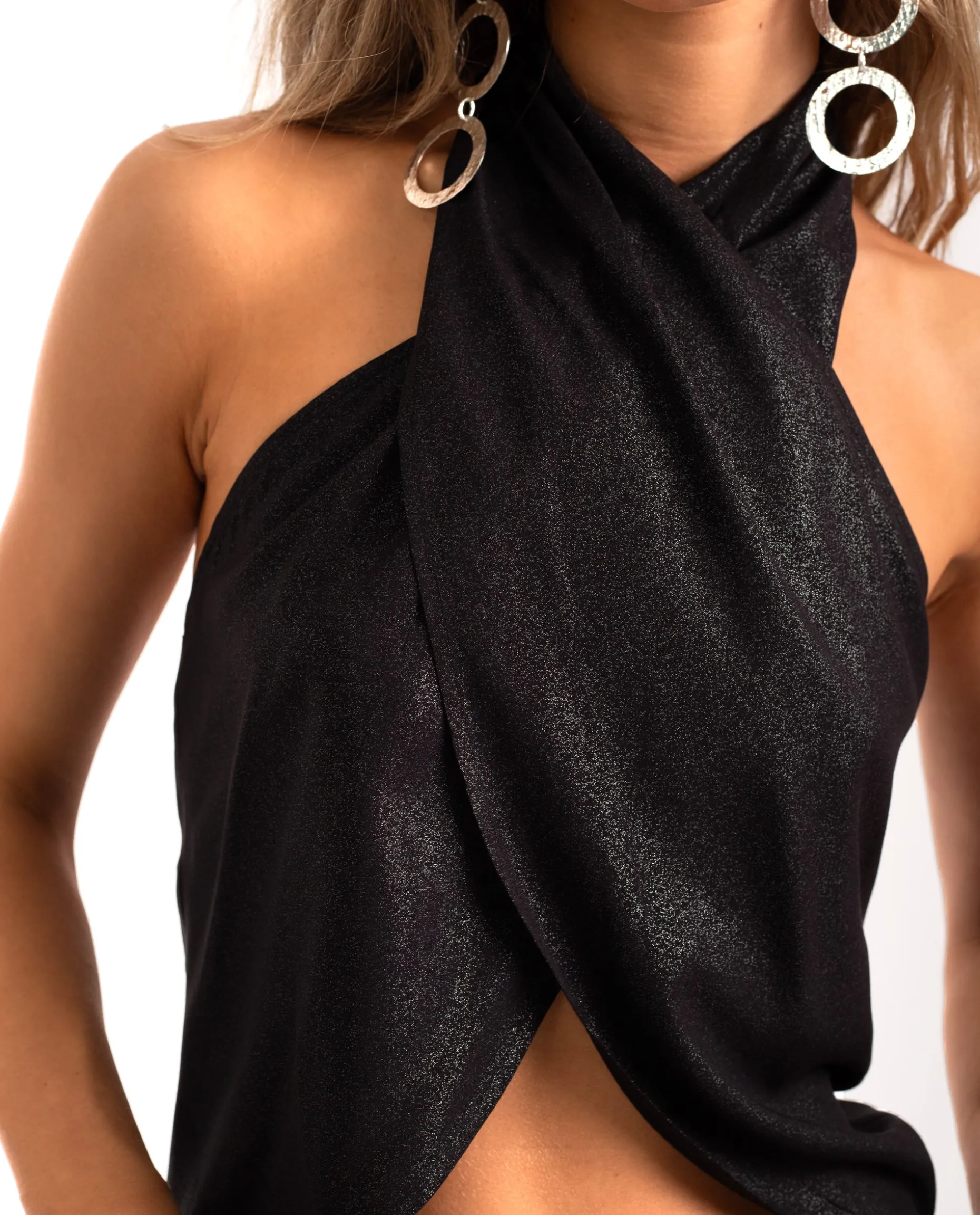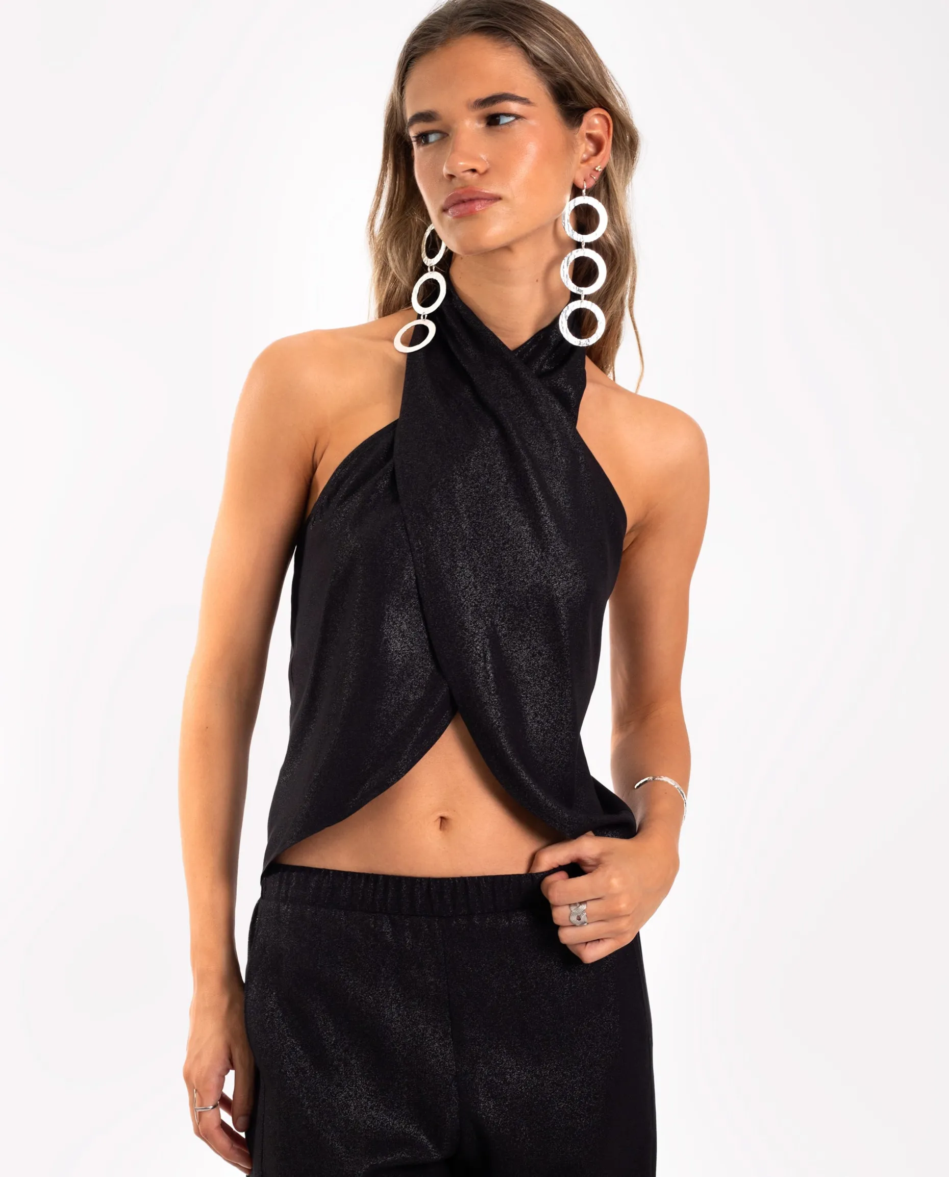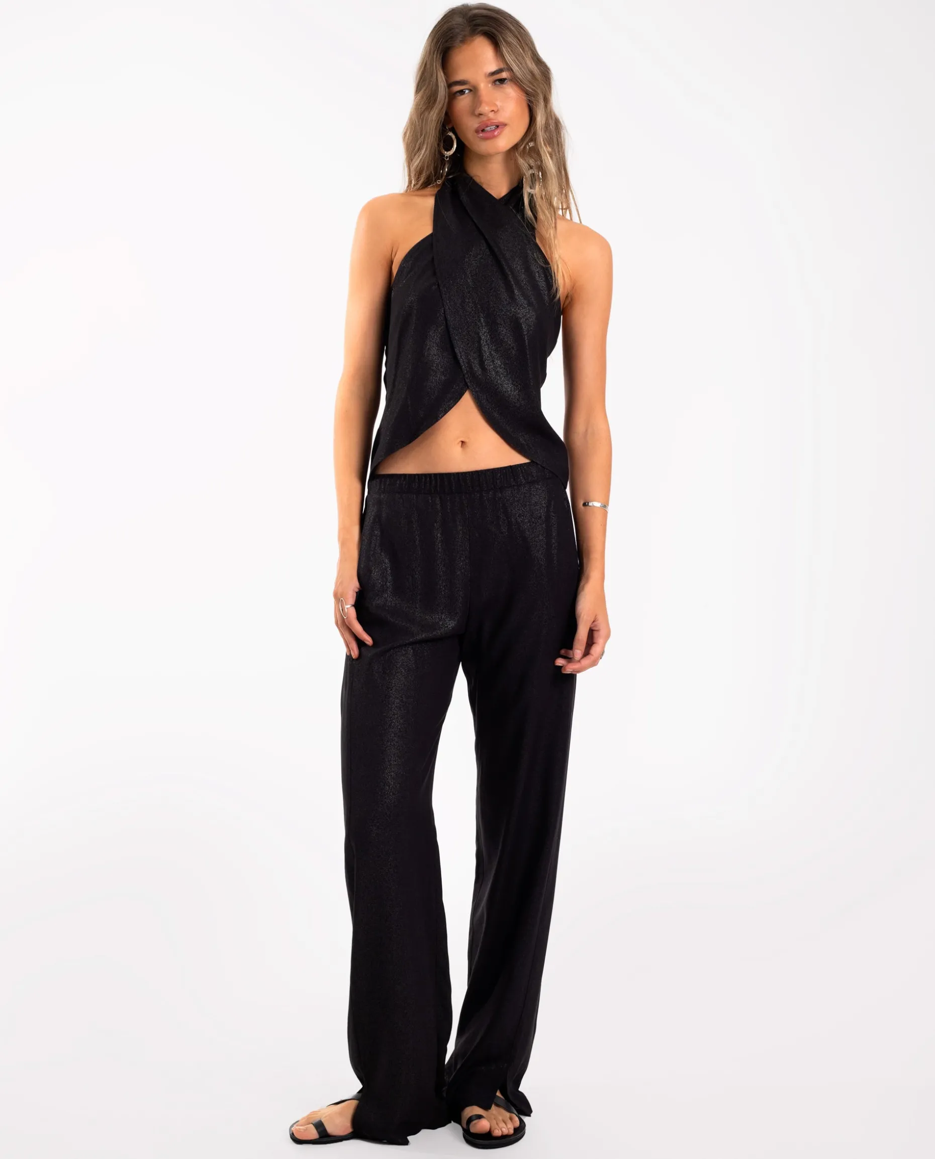 Necesitas este conjunto para verano! Su tejido es uno de los más especiales, ligero con un poco de brillo dorado. El top tiene un patrón cruzado con escote halter que puedes regular como más te guste. Los pantalones del mismo tejido son largos, con la cintura elástica para un ajuste perfecto. Como detalle, tiene dos aberturas laterales en el bajo, una de nuestras tendencias favoritas para poder lucir sandalia. Este total look nos parece ideal para una de esas noches de verano que no quieres que acaben nunca!๐