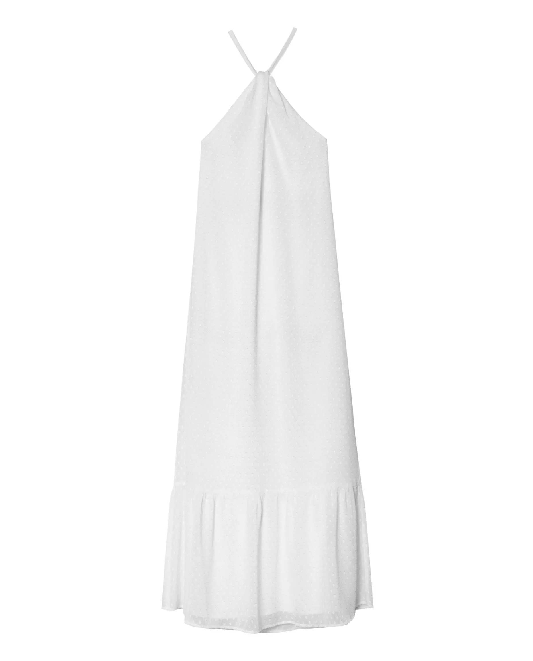 Uno de los vestidos de invitada más especiales para arrasar en cualquier evento.๐El tejido plumeti es ideal, con pequeños puntos en relieve y un nudo en el escote que favorece mucho. Imagínatelo morena! Tiene la espalda descubierta y un volante en el bajo para que tenga mucho movimiento al caminar. Es el vestido perfecto para combinar de mil formas y llevar en diferentes ocasiones, ya sea con una sandalia de tacón o una sandalia plana para verano.