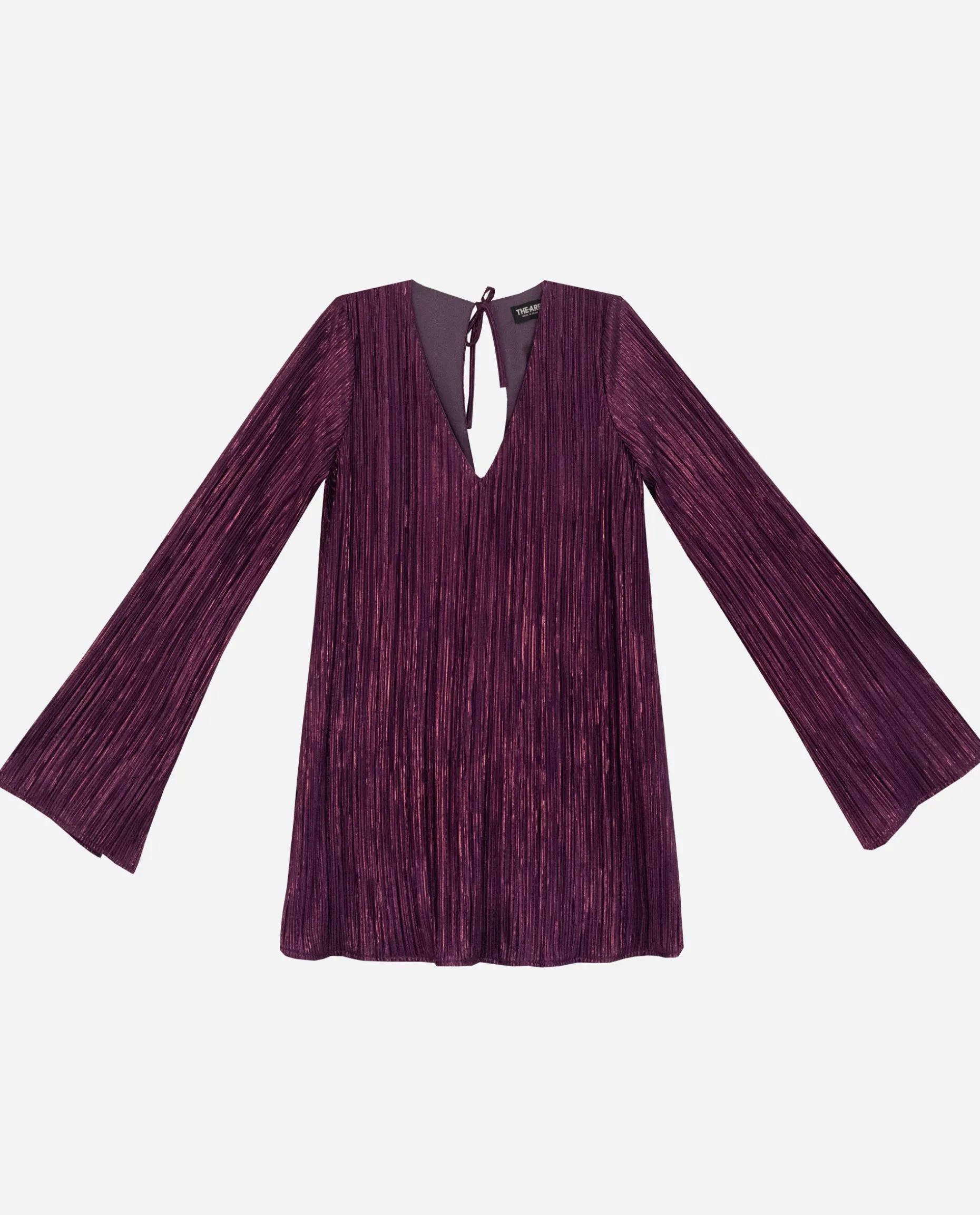 Uno de los favoritos de nuestra colección de fiesta! Este vestido es corto y te va a encantar lo bien que sienta, además su patrón es muy favorecedor. Es de corté evasé y lleva el escote en pico y las mangas ligeramente acampanadas con el detalle de las aberturas. Lo mejor es su forro de pantalón, así que es un diseño muy cómodo y elegante. El tejido plisado es otro nivel: el color, la caída, los brillos y los reflejos… Simplemente impresionante chicas!