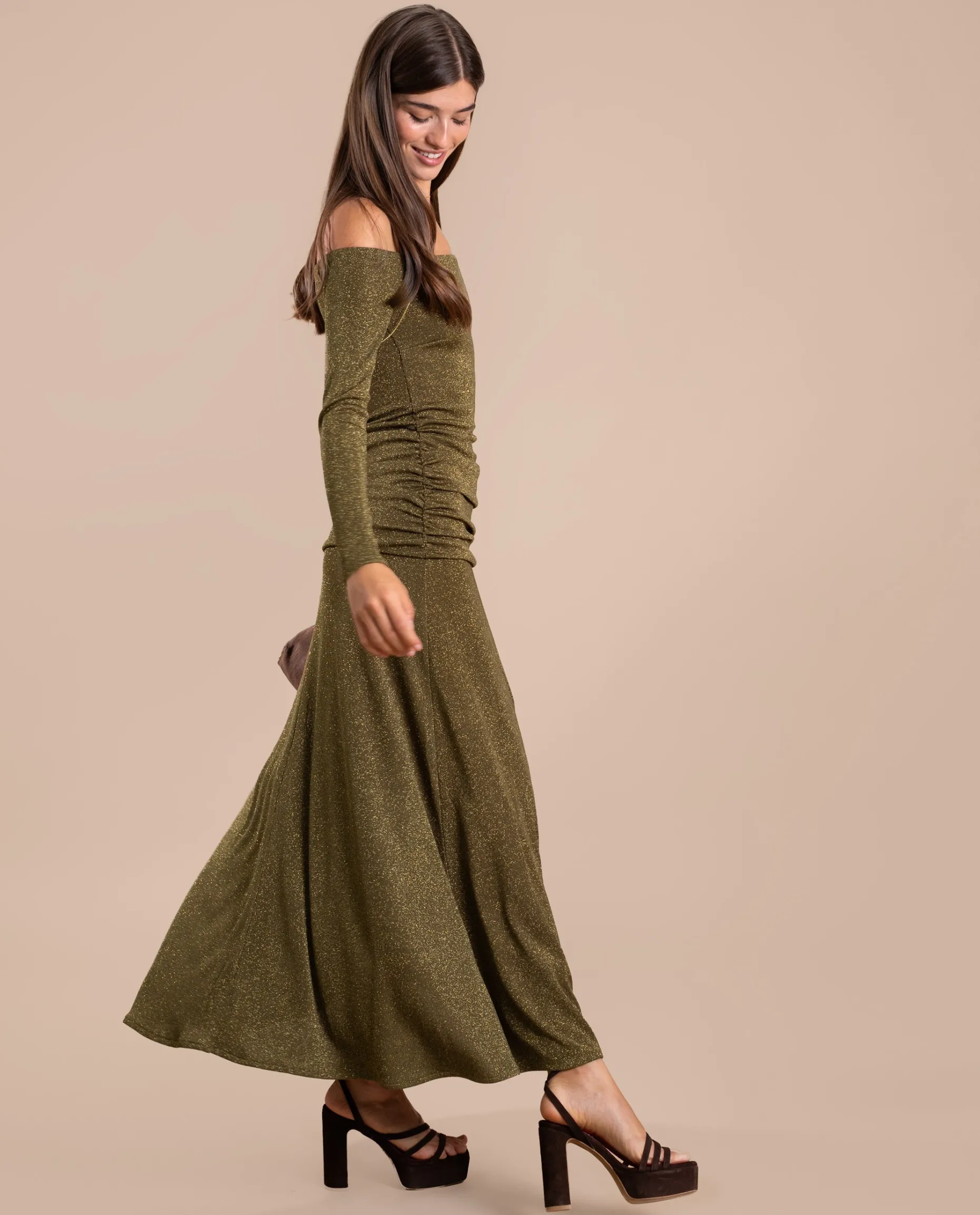 Si tienes un evento especial y buscas un look que esté a la altura, el vestido Sophie es la opción ideal. Su escote bardot deja los hombros al descubierto, añadiendo un toque de elegancia y tendencia al look. Está confeccionado en un tejido de punto elástico con hilos de lurex dorados que aportan un brillo espectacular, haciéndolo aún más especial. Los detalles fruncidos a lo largo del cuerpo estilizan, mientras que el volante en el bajo aporta movimiento. Es cómodo, favorecedor y, cuando te lo pruebes, sentirás que está hecho a tu medida.๐ค๐ผ