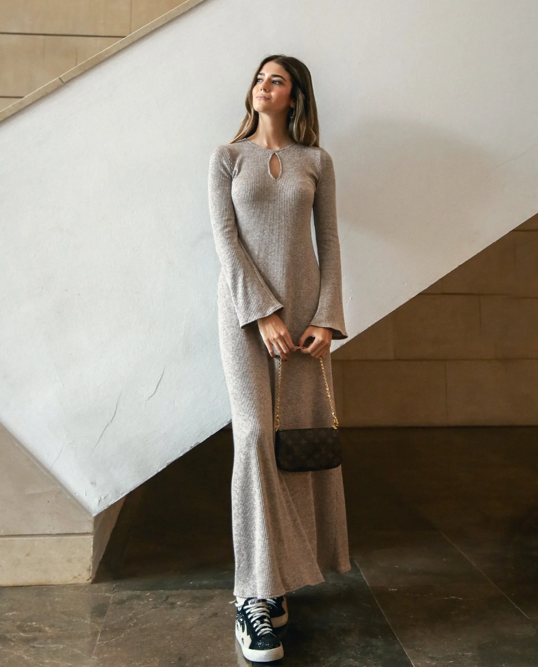Este vestido es uno de nuestros favoritos porque lo puedes llevar tanto en el día a día como en una ocasión especial. Es de punto canalé, elástico y con un toque de brillo, muy agradable al tacto. Este vestido tiene una caída espectacular y su patrón es súper favorecedor: ajustado a la silueta, cuello redondo con escote de lágrima y mangas ligeramente acampanadas. Es uno de esos vestidos que no necesitas más para ir guapa y con estilo!