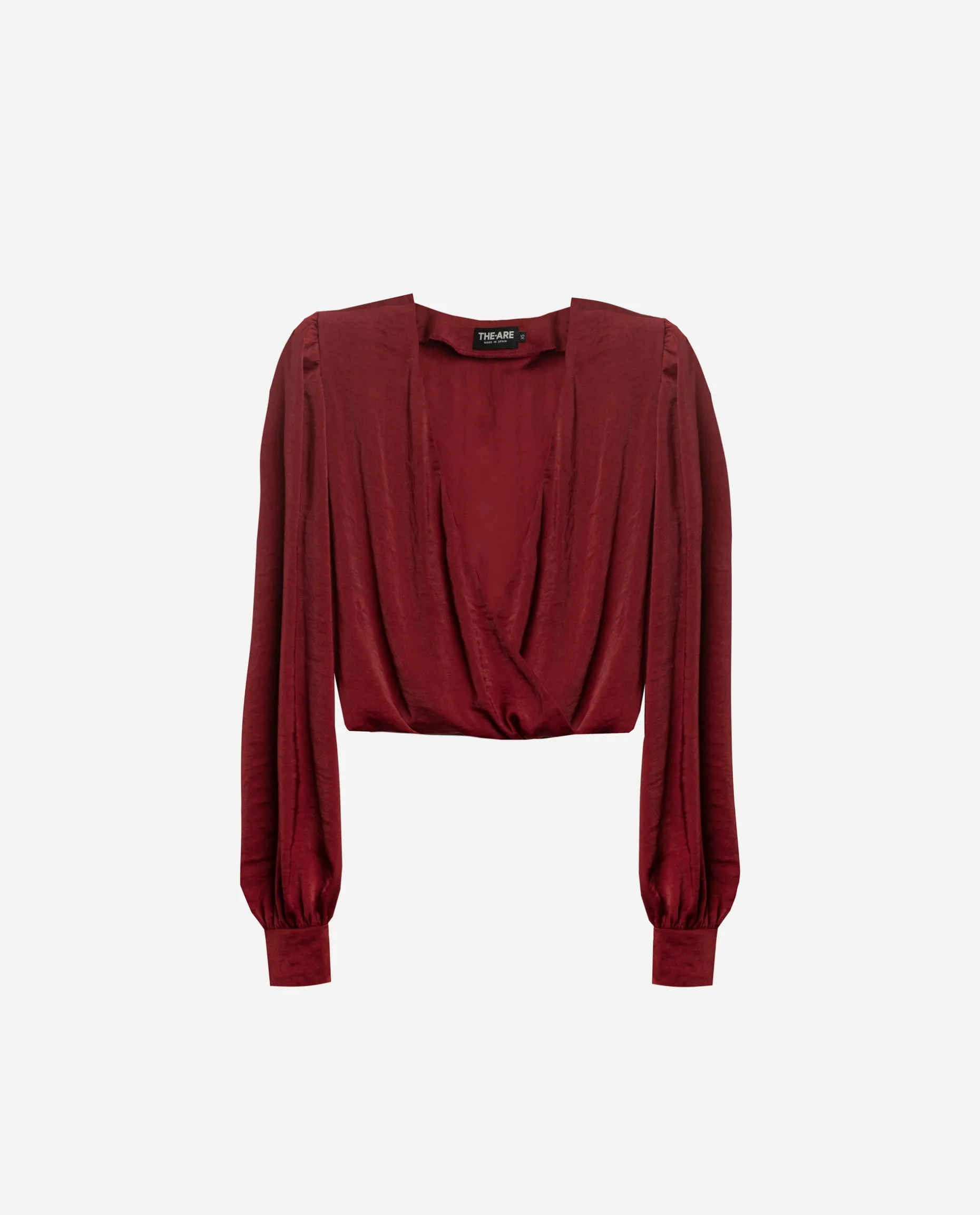 Esta blusa nos encanta por su patrón elegante y por su color burdeos satinado que no puede ser más acertado para llevar en momentos especiales. Es una blusa elegante con escote cruzado que la hemos diseñado con un efecto ablusado muy favorecedor y las mangas largas fruncidas con puños. Es un diseño único que incluir ya a tu colección, no te quedes sin ella!