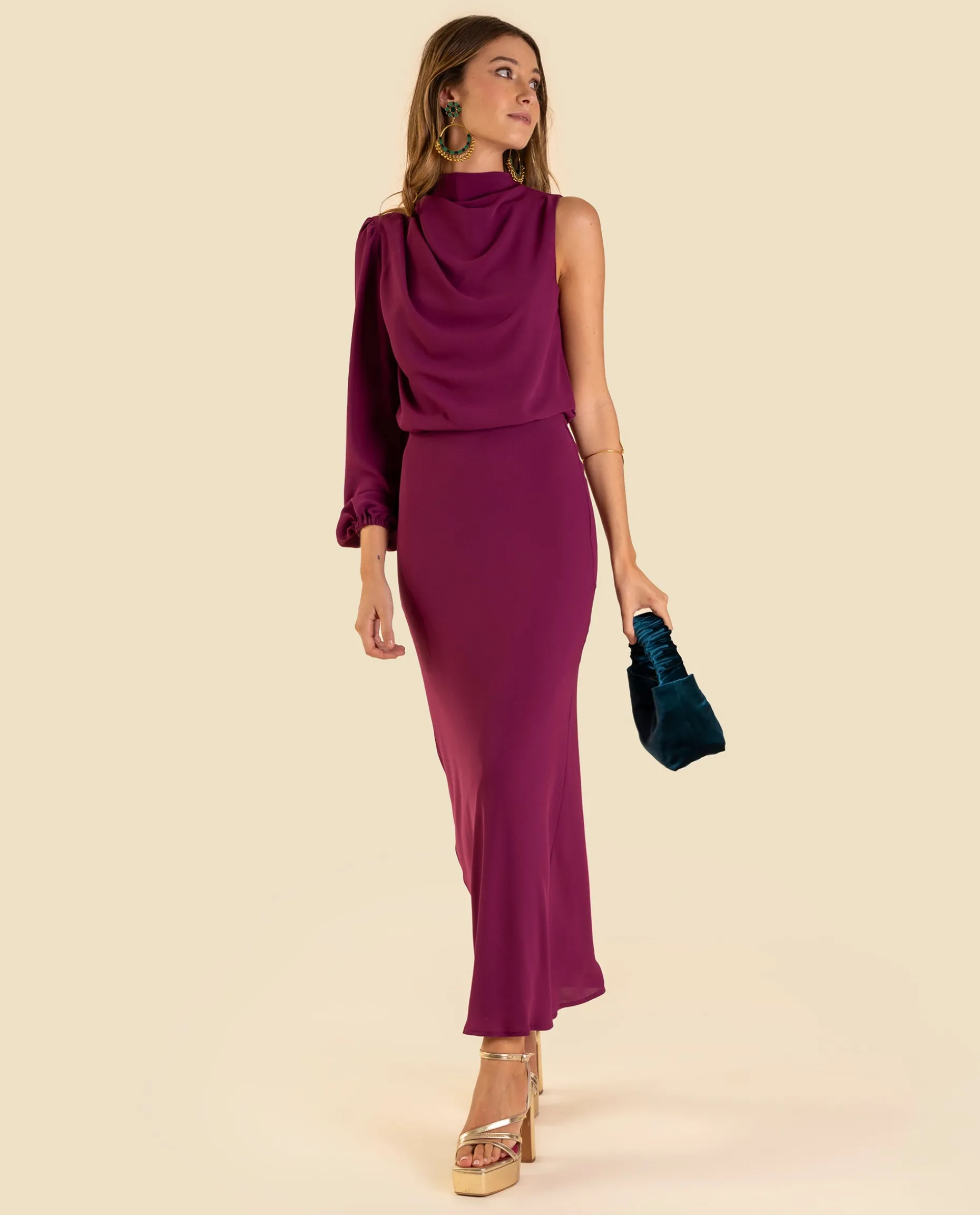 Nos encantan los conjuntos de dos piezas para una ocasión especial por su versatilidad y estilo. En esta colección, la blusa Mrs. Arriaga destaca por su escote asimétrico y cuello alto con el detalle drapeado que no puede ser más elegante. La manga es ligeramente abullonada, le da un estilo romántico al look que nos encanta. El efecto óptico del total look es un vestido, pero al ser dos piezas podrás combinarlo de diferentes formas. Completa el look con la Falda Mrs. Arriaga para lucir espectacular durante el gran día!