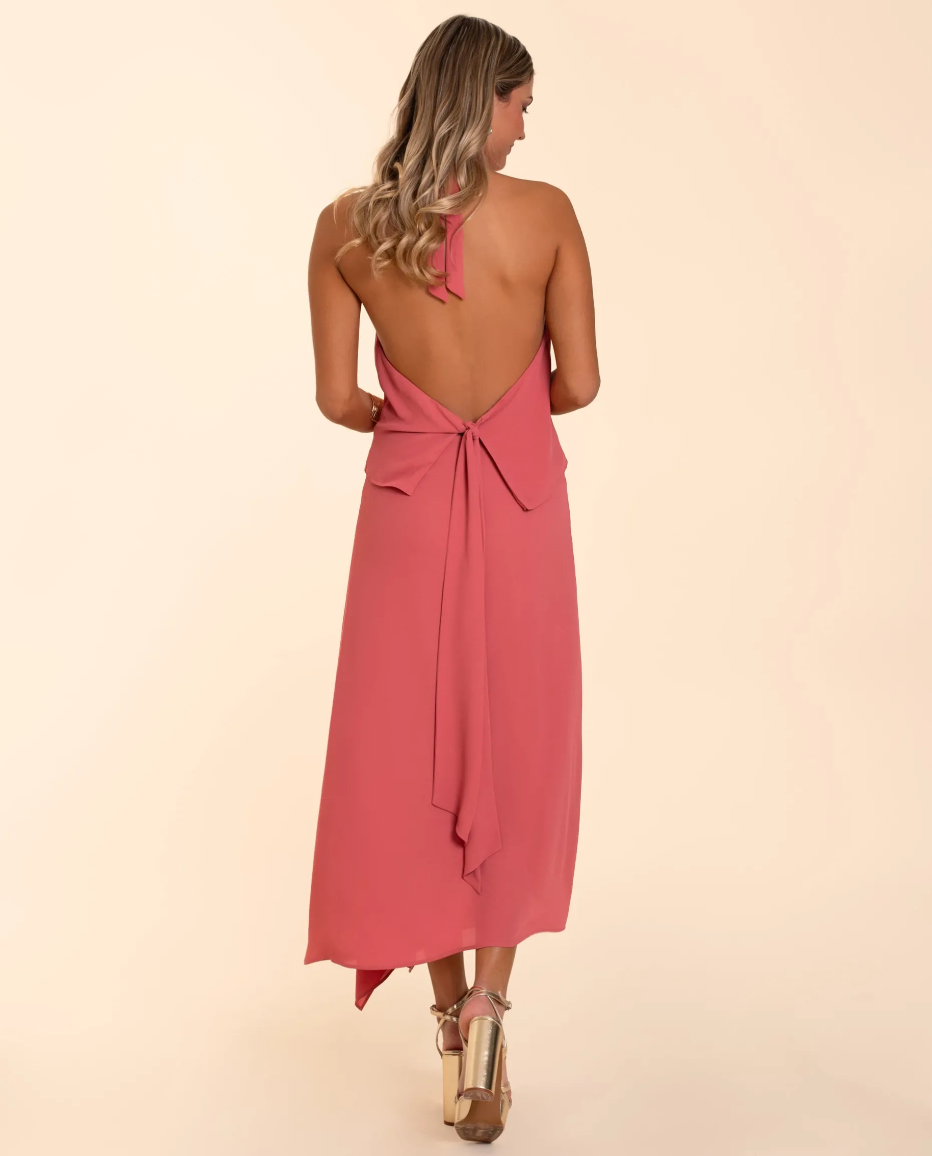 Inspirándonos en Andalucía, surgió el diseño de este conjunto con ese aire fresco y original que caracteriza al sur. En este conjunto de dos piezas, la blusa añade el punto atrevido al look dejando la espalda completamente abierta, con una lazada que puedes ajustar por detrás o por delante. El escote drapeado sin duda es todo un match en este conjunto y lo mejor es que puedes regularlo al cuello. La falda destaca por su diseño ajustado y el vuelo que añade la pieza drapeada que va desde la cintura hasta la rodilla, marcando así la abertura de la falda. El efecto óptico del total look es un vestido, pero al ser dos piezas podrás combinarlo de diferentes formas.