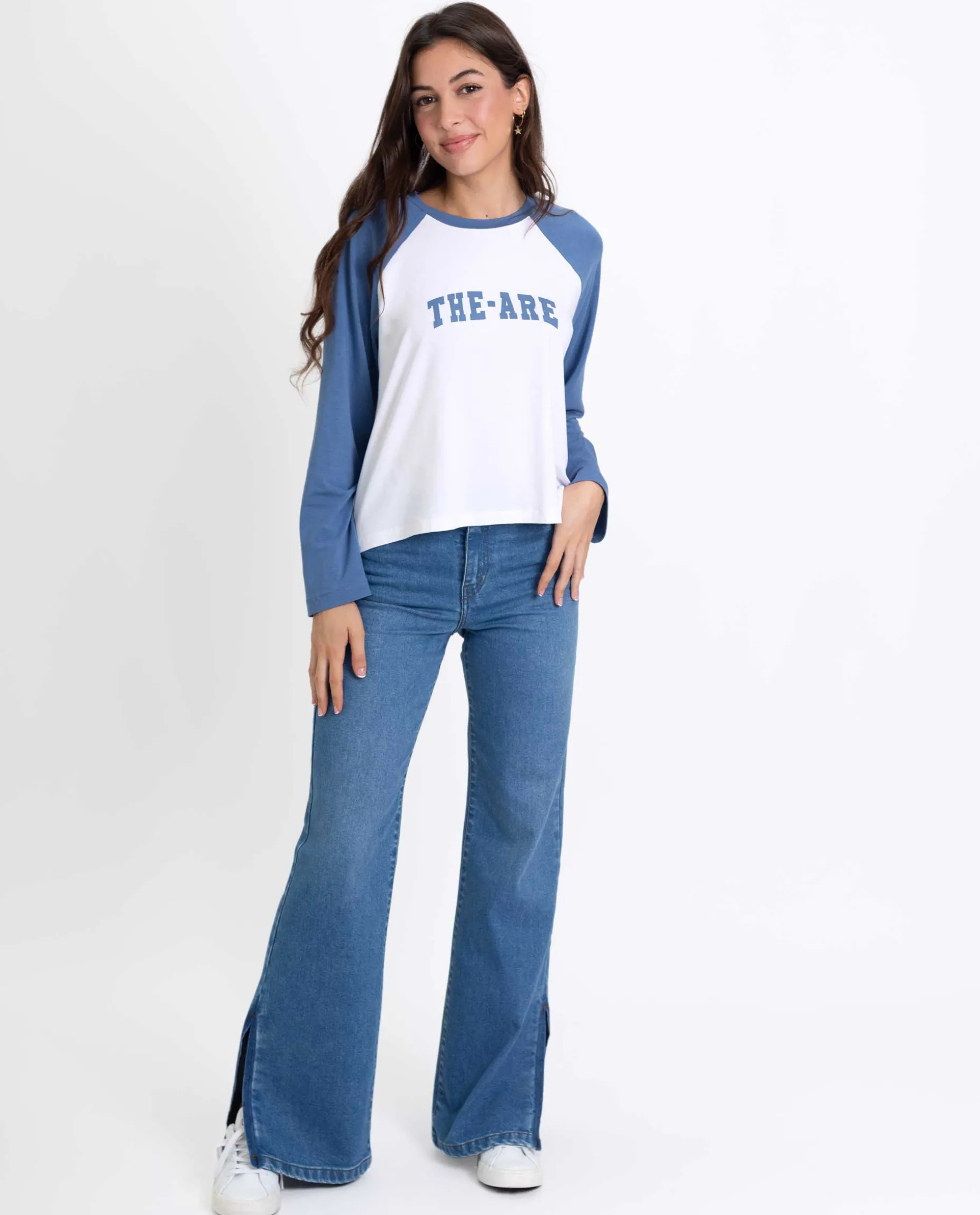 Una de nuestras camisetas básicas favoritas para el día a día. La hemos diseñado con las mangas largas azules con el logo de THE-ARE al tono. El estilo es de una camiseta de béisbol, confeccionada en un tejido fluido muy agradable para que sea fácil de llevar a cualquier plan casual. Es uno de esos básicos especiales cómodos y con estilo para llevar con unos jeans y unas zapatillas blancas!
