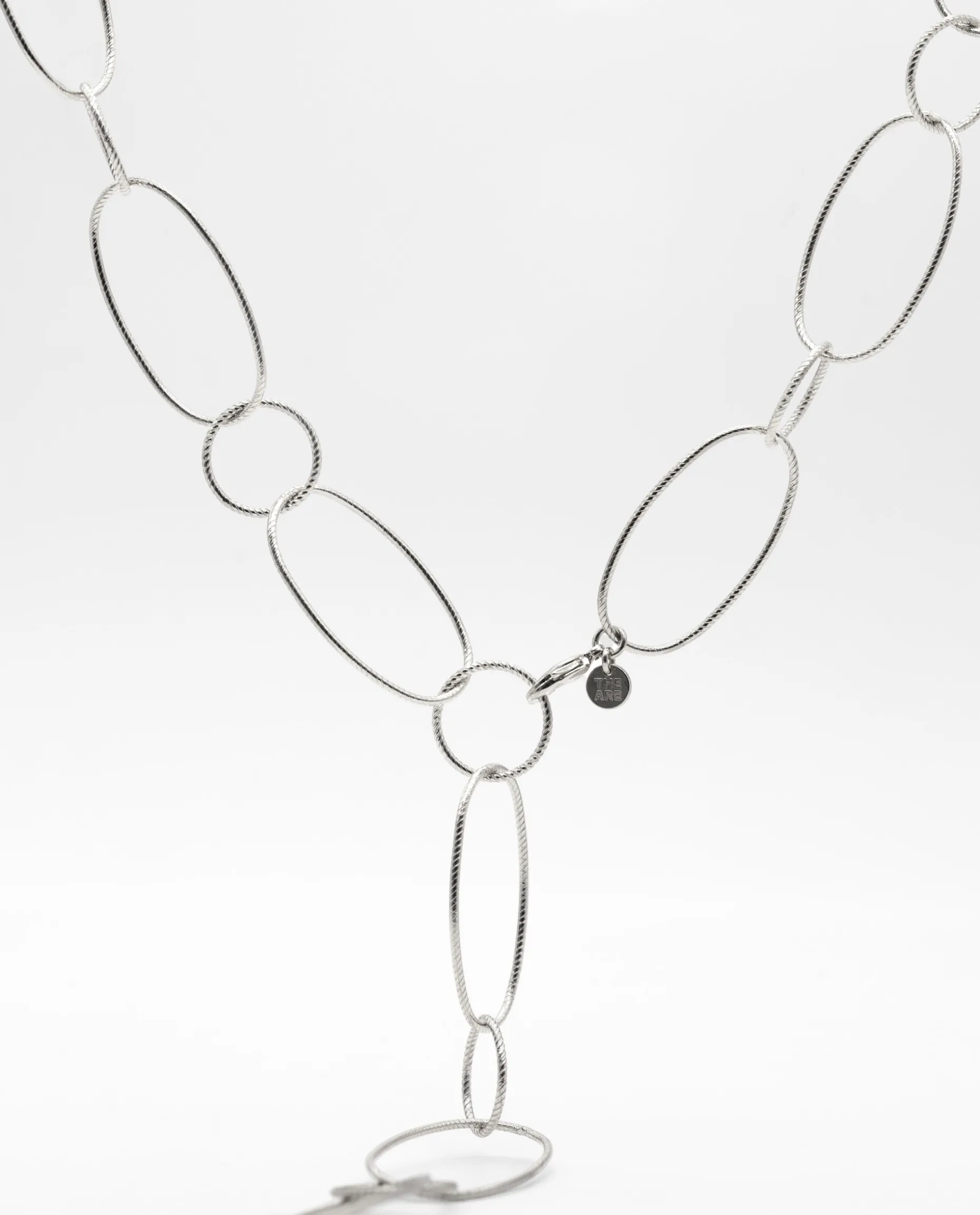Un collar tan versátil como elegante. Es uno de los diseños tendencia y este va a volar! Está compuesto por eslabones ovalados y redondos con textura trenzada y completan tu look lleves la prenda que lleves. Gracias a su cierre lo puedes ajustar a cualquier eslabón de la cadena y llevarlo de diferentes formas.