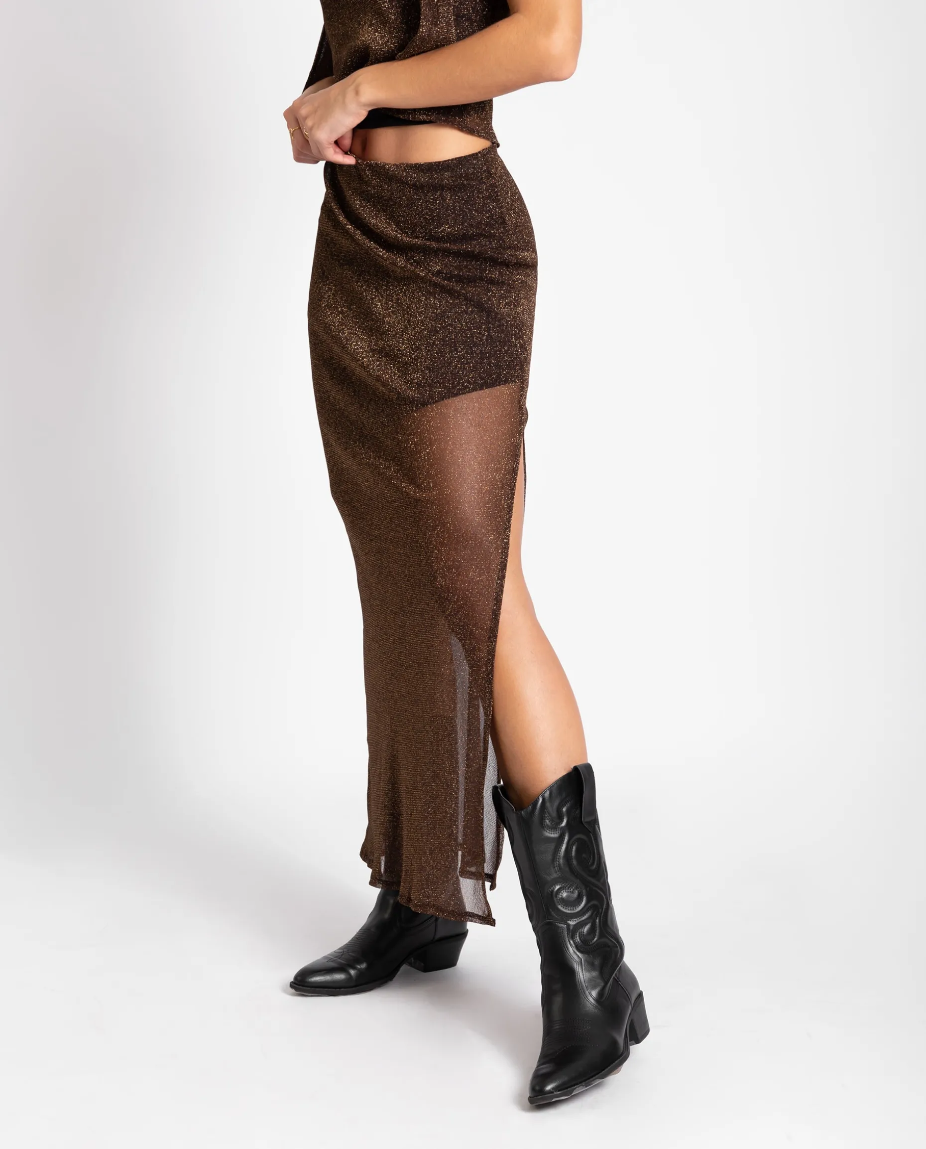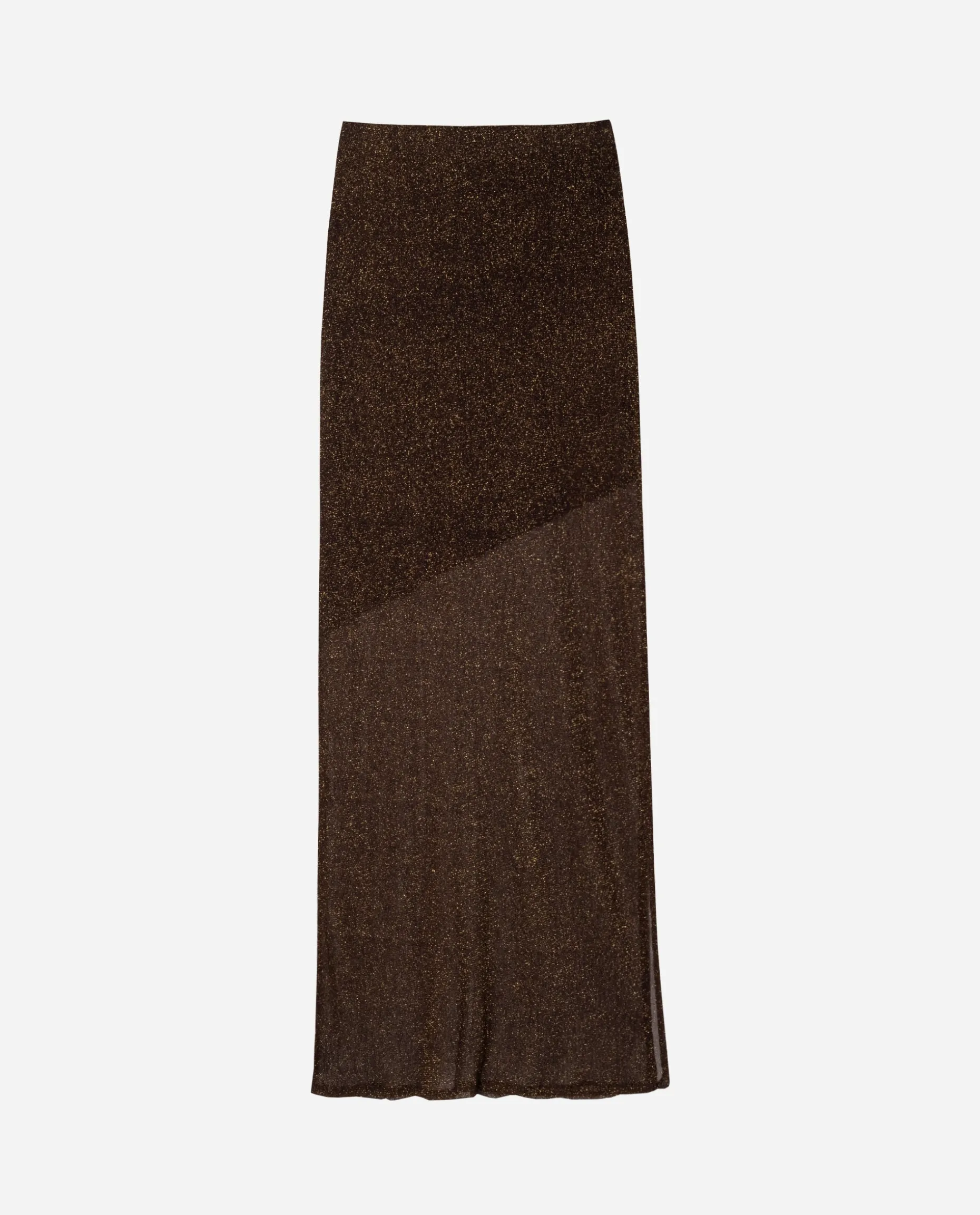 Esta falda midi es perfecta para arrasar en tus noches de fiesta. En cuanto la tengas en tus manos verás que el tejido es muy especial, un tejido de punto con mucho brillo. En la cintura lleva una goma elástica que hace que se ajuste perfectamente a cualquier talla. La hemos diseñado de talle medio y con el forro asimétrico que es súper tendencia. Combínala con un top bandeau o un jersey oversize según el estilo que quieras darle.