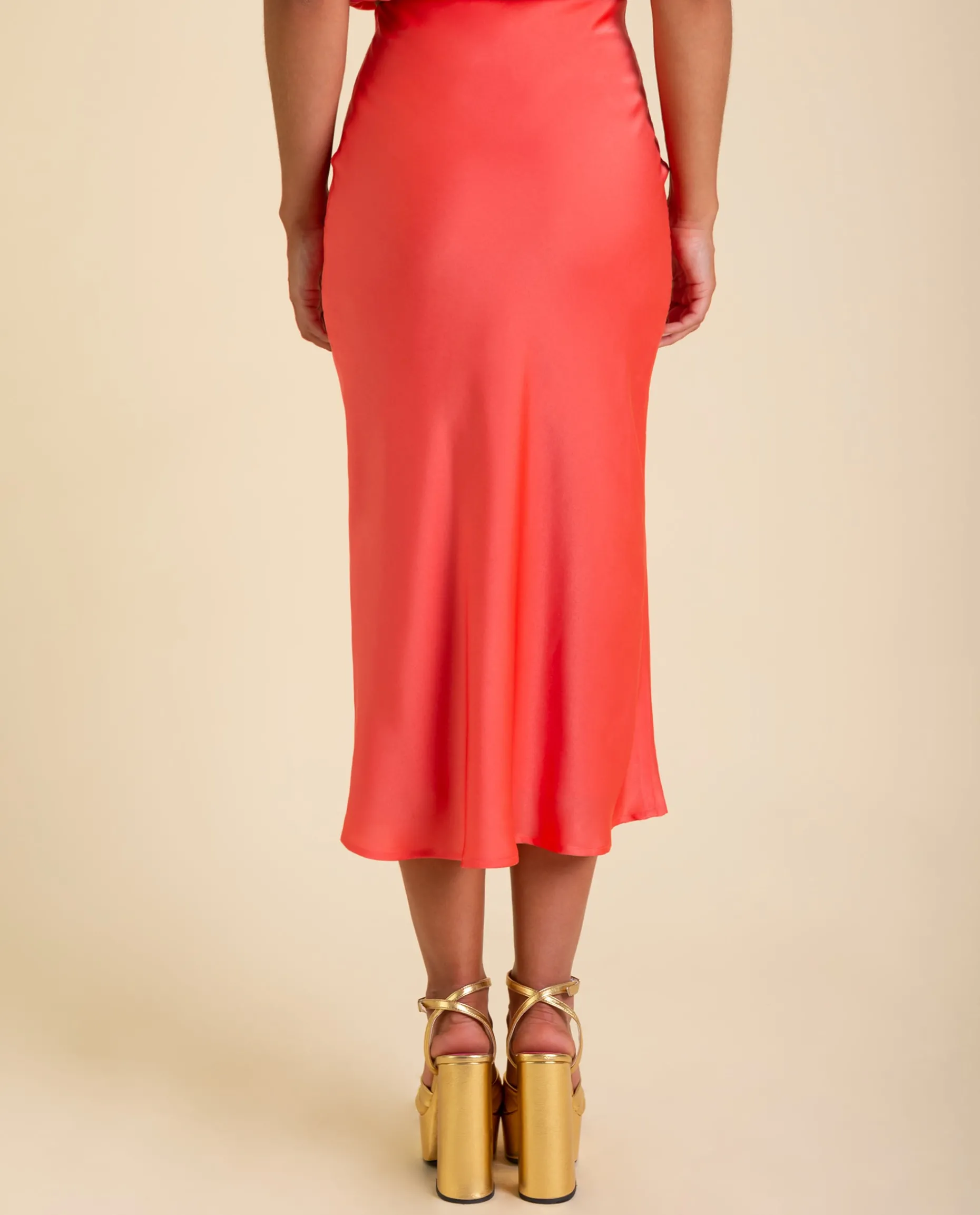 Una de las apuestas más seguras para ir con un dos piezas elegante a un evento especial. El patrón de esta falda sienta como un guante ya que al estar cortada al bies se adapta perfectamente a ti y estiliza muchísimo. Confeccionada en un tejido satén coral, esta falda de tubo, una de las máximas tendencias de la temporada, tiene el talle alto, un poco de vuelo en el bajo y cintura elástica para que la lleves muy cómoda. Elígela ahora y prueba a combinarla con la Blusa Mrs. Beltrán para conseguir el match perfecto. El efecto óptico del total look es un vestido, pero al ser dos piezas podrás darle muchísimo uso.