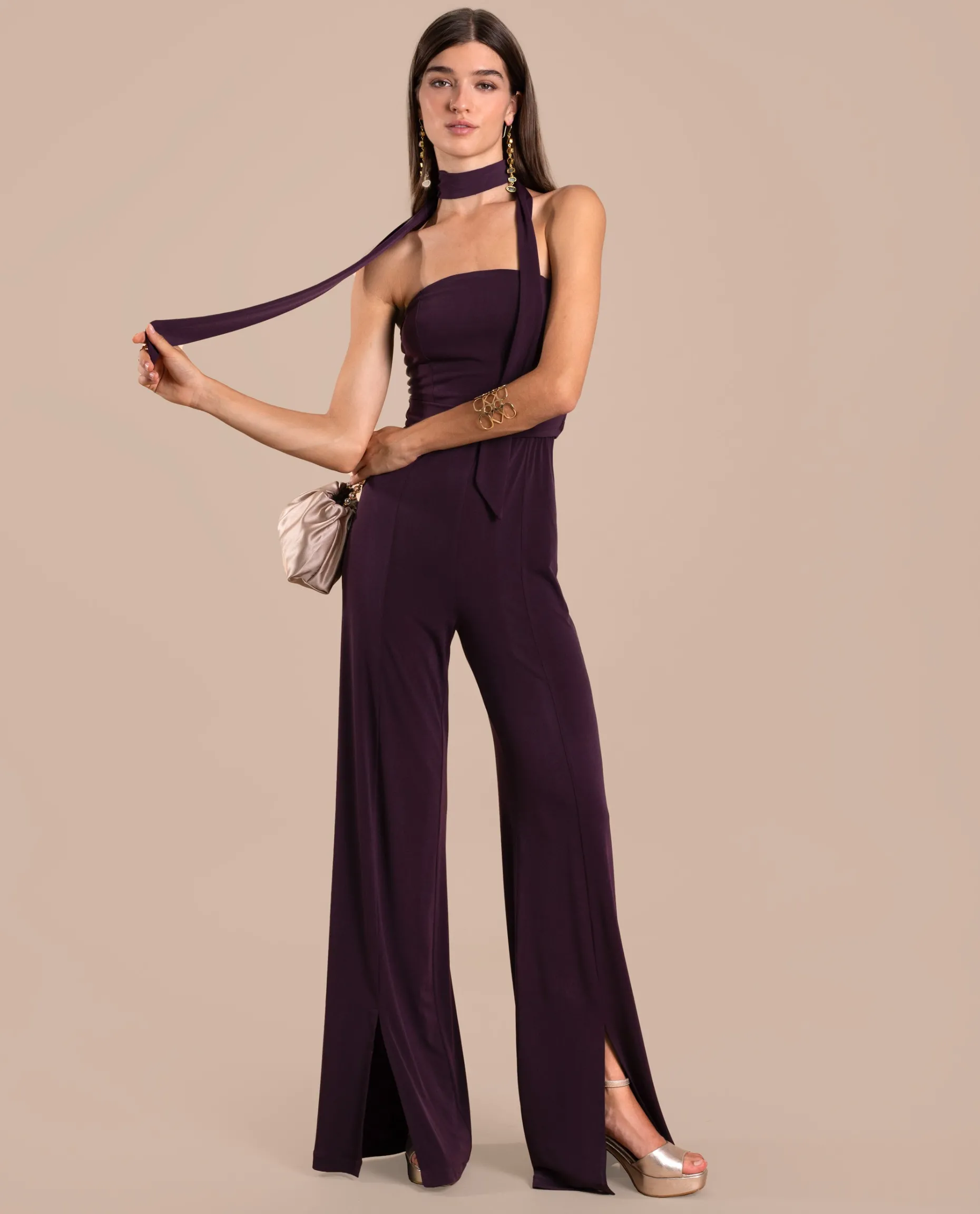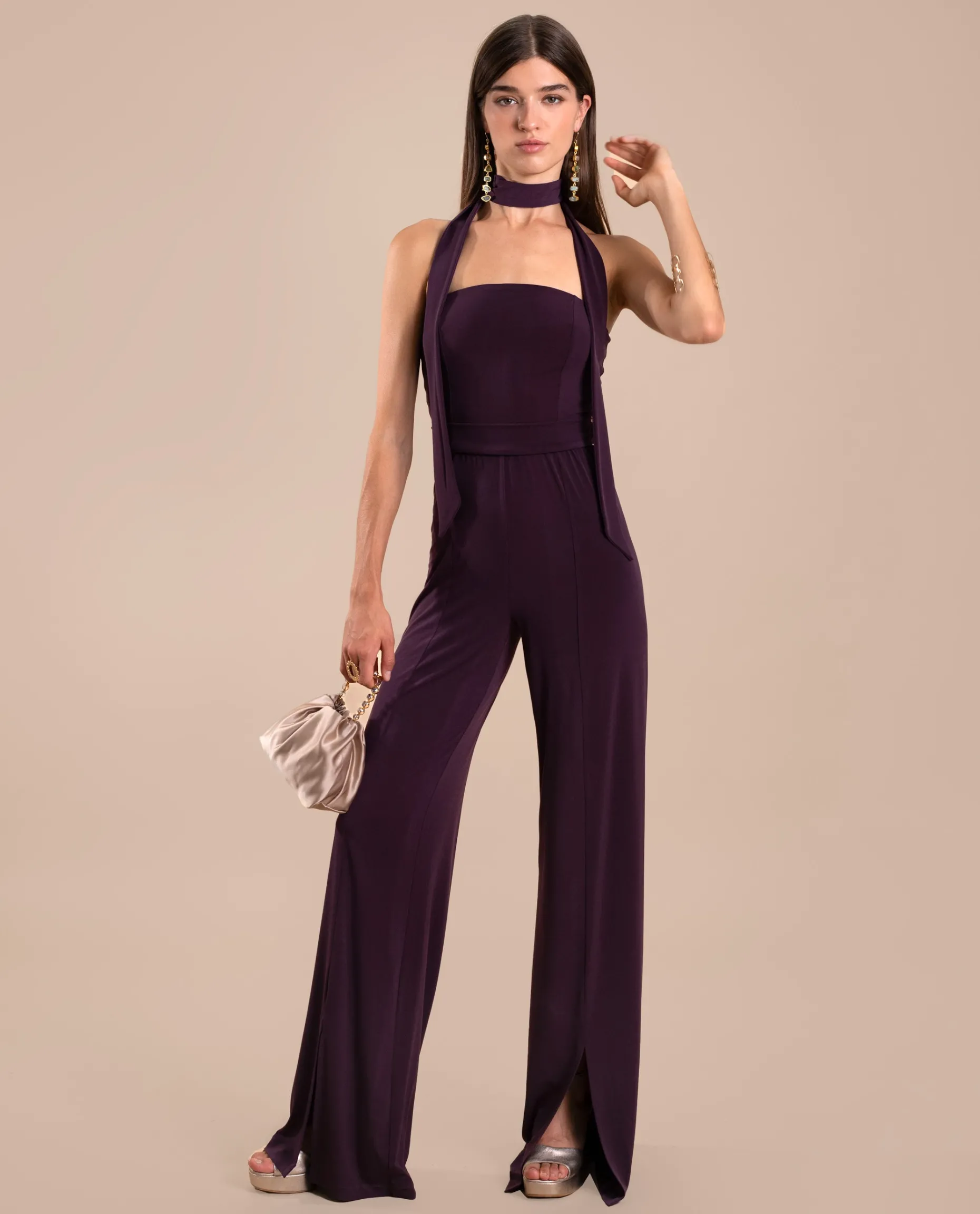 Nuestra diseñadora ha pensado en todo para que sea el mono que mejor siente: escote de palabra de honor, tejido de punto elástico para estilizar y lazada al cuello efecto fular. Sin duda, es uno de los monos elegantes que desde el primer momento nos enamoramos de él! El cuerpo es ajustado y el pantalón palazzo es talle alto efecto push up para estilizar al máximo. Lleva los hombros completamente al descubierto y lo llevarás muy cómodo porque gracias a la silicona se ajusta a la perfección. El color ciruela es súper elegante, uno de los favoritos para vestir en eventos y favorecedor para todo tipo de tonos de piel. Póntelo para tu graduación o evento con accesorios en dorado y serás la invitada perfecta.