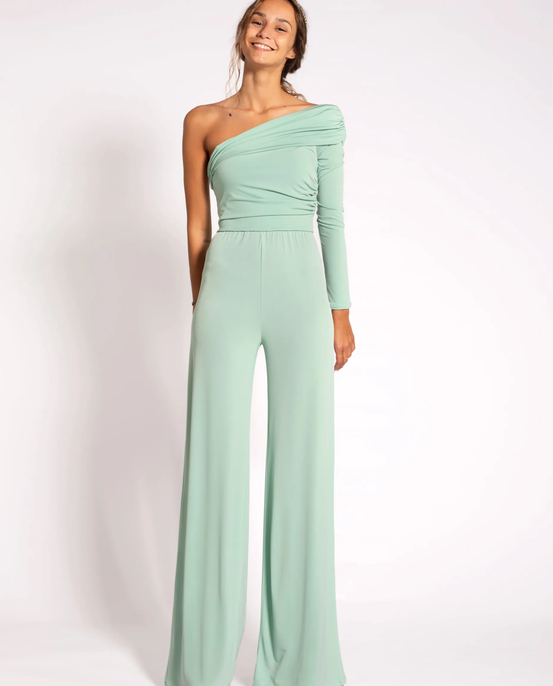 Una de nuestras apuestas más seguras para ser la invitada perfecta en primavera. Alucinarás con lo bien que sienta este mono largo y cómo se adapta a tu cuerpo. El cuerpo es ajustado y el escote asimétrico con drapeado súper favorecedor. Has oído eso de que ‘en la sencillez está el gusto’? Este modelo de invitada nos parece la mejor versión.