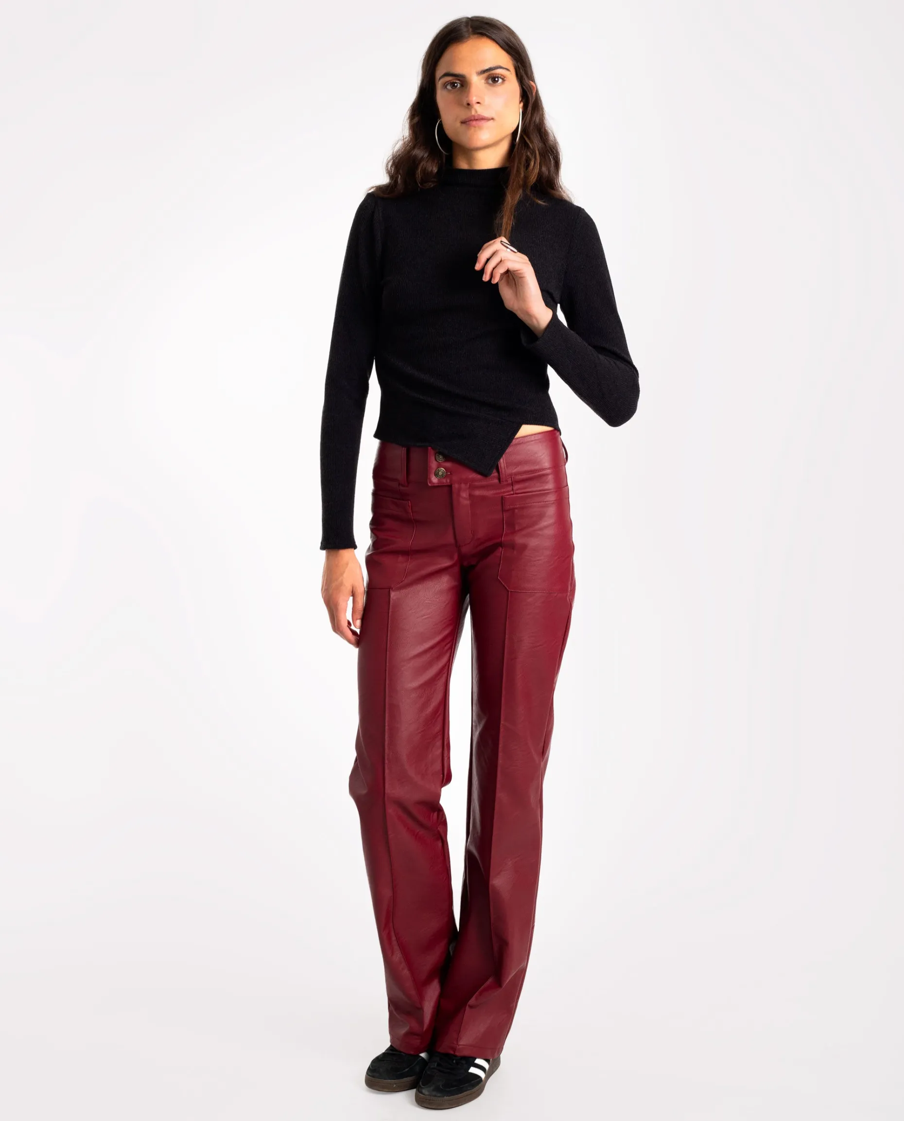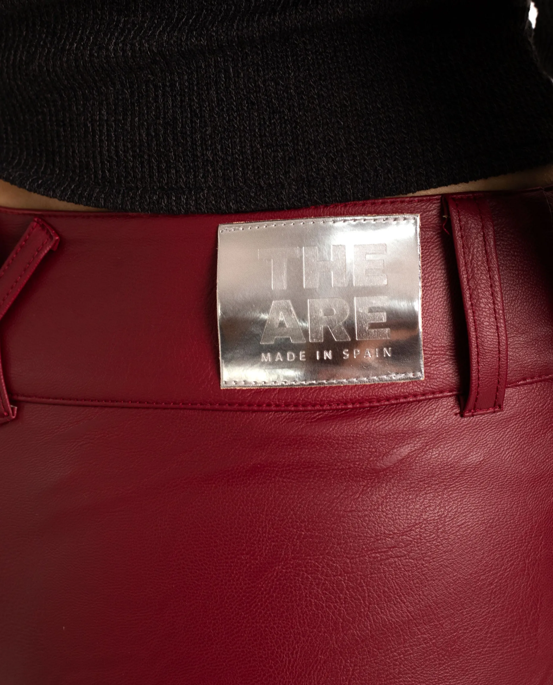 Este es el pantalón de cuero que mejor sienta! Hecho de un tejido elástico y suave por dentro, irás cómoda y con estilo gracias a su color rojo en tendencia. Es de talle medio, con corte recto y nos encanta que queden ligeramente oversize, es uno de esos pantalones que elevan cualquier look. Las costuras centrales crean un efecto visual de piernas más largas y lleva con bolsillos. El detalle de la cintura es ideal para llevar con camisetas metidas por dentro o jerséis cropped. Estilizan mucho y tienen efecto push up. Fíchalo antes de que vuele!