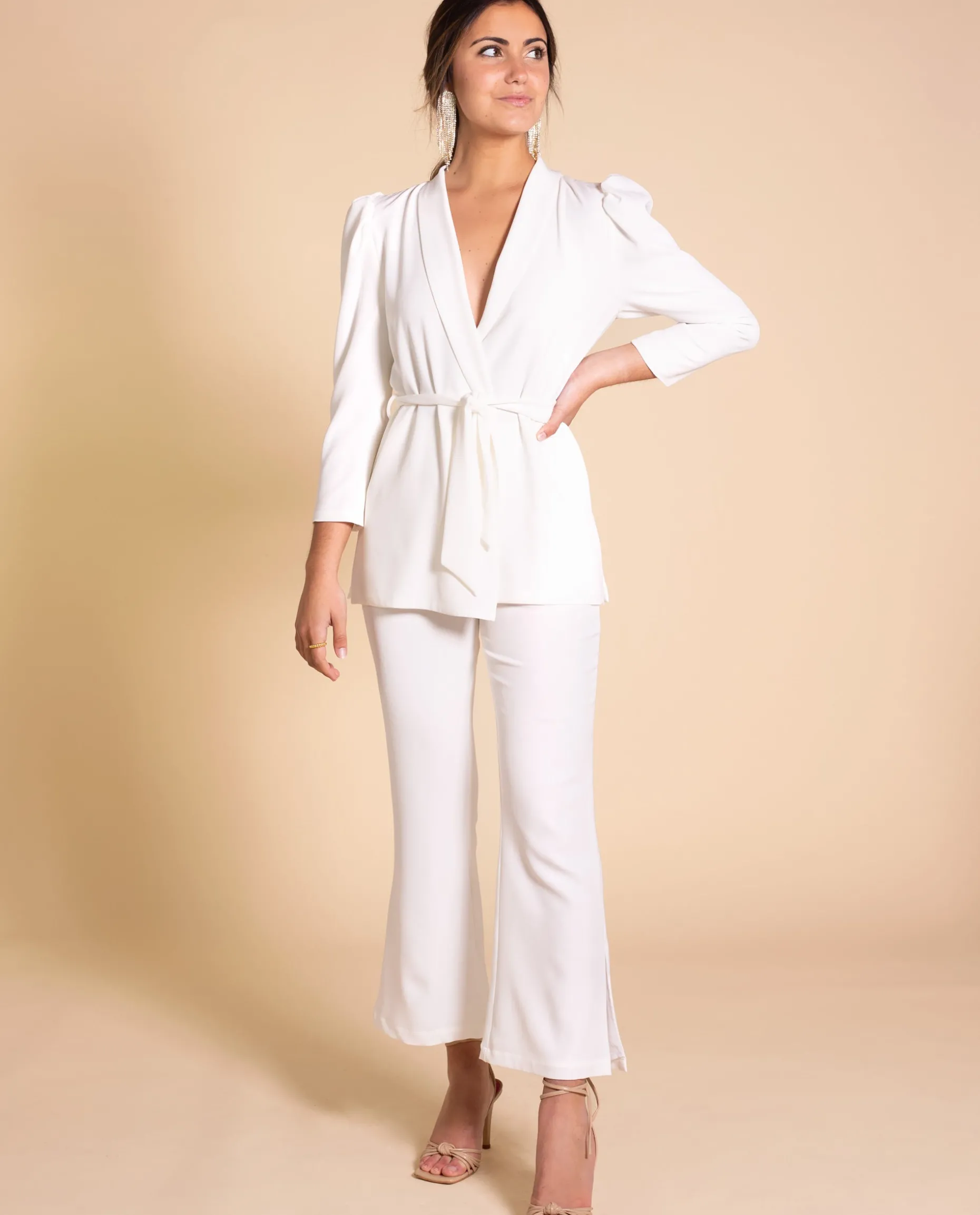 Nos flipa la opción de traje para boda, graduación o evento, así que en esta nueva colección no podía faltar.๐ค๐ผ Es conjunto Mrs. Harley está compuesto por una blazer de corte recto, entallada con un cinturón y este pantalón de corte capri ligeramente acampanado, con el talle muy alto y cinturilla para que estilice. El conjunto dos piezas está confeccionado en un tejido de gasa blanco que va forrado para que tenga más cuerpo y no transparente nada!