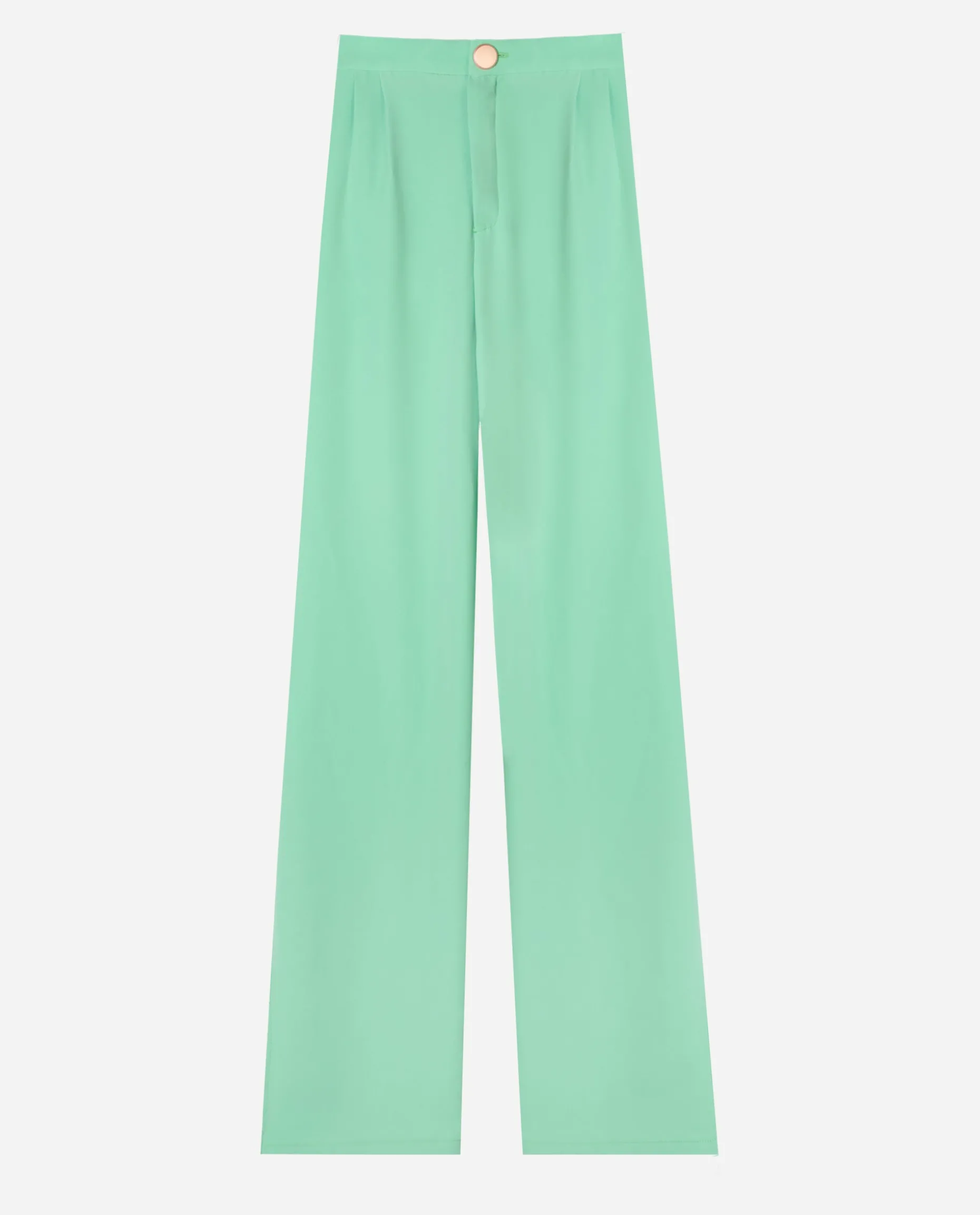 Si tienes un evento especial y buscas un pantalón muy elegante para ir diferente en esta ocasión: sigue leyendo! Gracias al tejido es un pantalón con mucho cuerpo y caída. Siguiendo la línea palazzo, este es un poco más ajustado de arriba y tiene la pernera ancha. Además, le hemos añadido el detalle de la abertura al final del pantalón, que dejará que se vea el zapato.