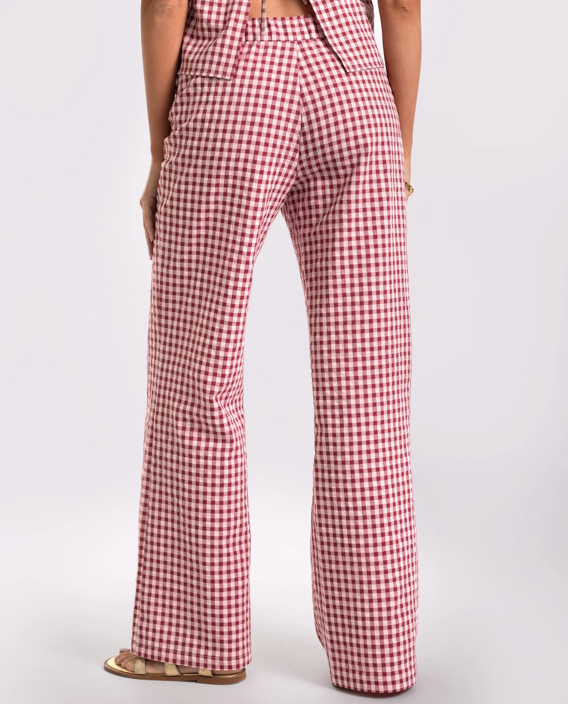 PANTALÓN RITA · BURDEOS Y ROSA