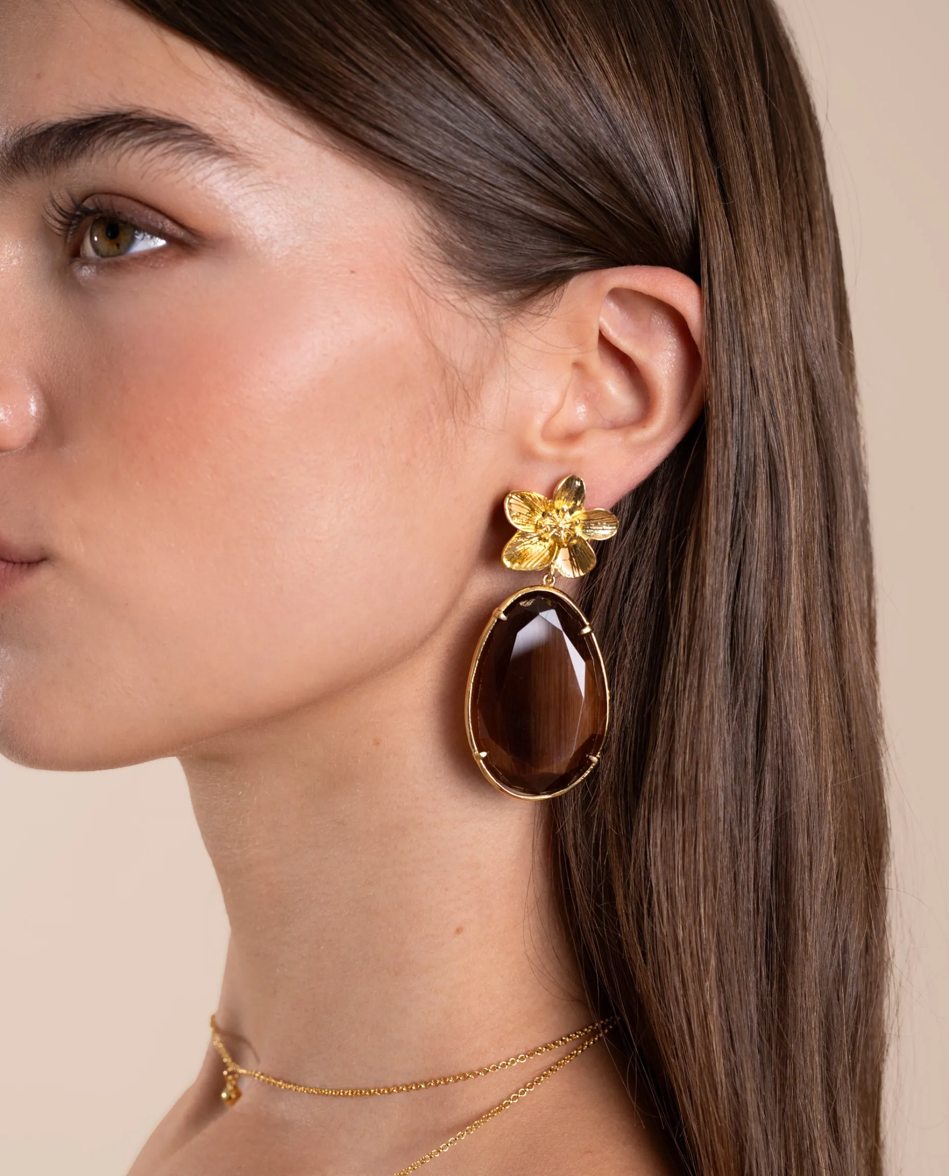 PENDIENTES DAISY DROP BROWN · BAÑO ORO