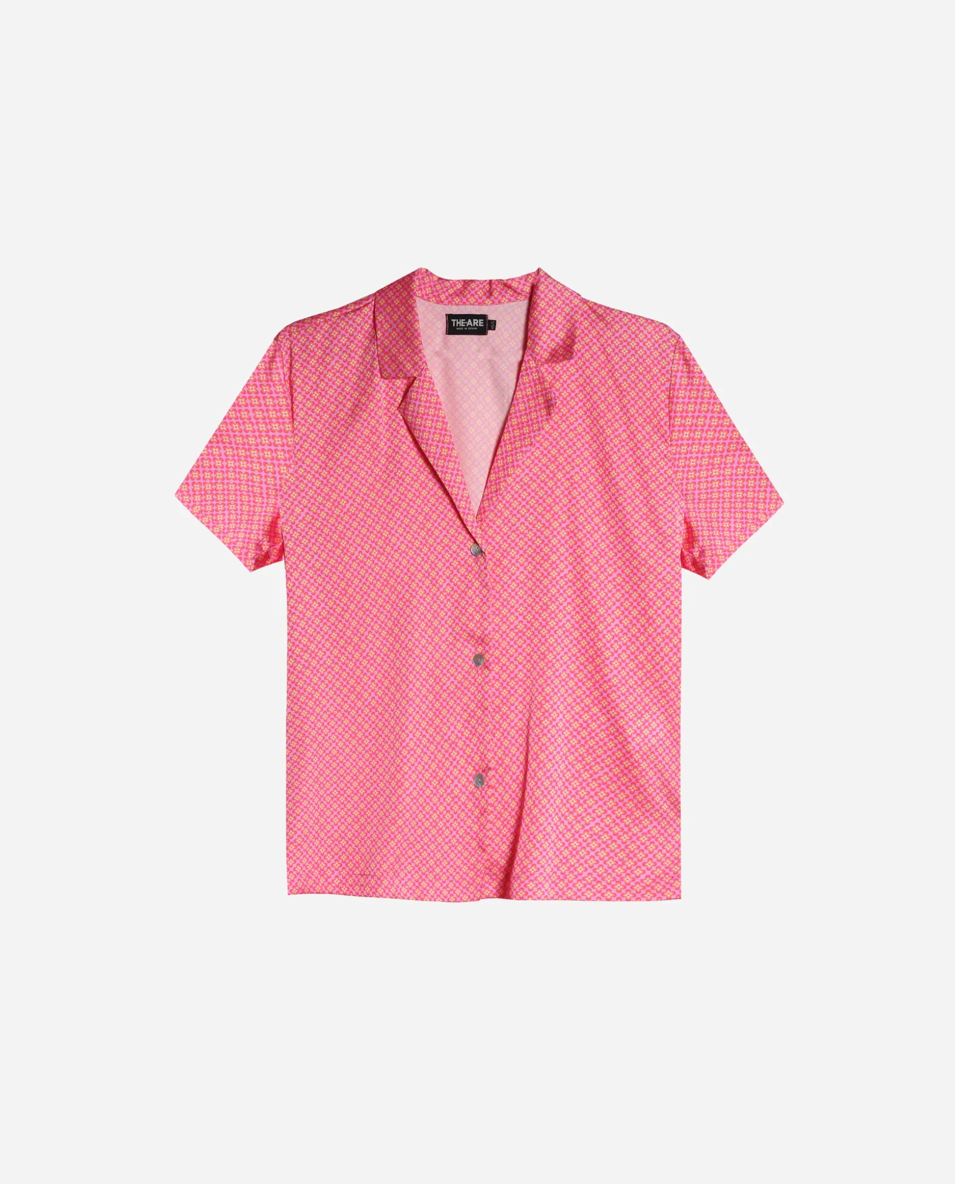 Camisa de pijama manga corta con estampado geométrico fucsia. Combínala con el Pantalón Corto del Pijama Pink Chaos.