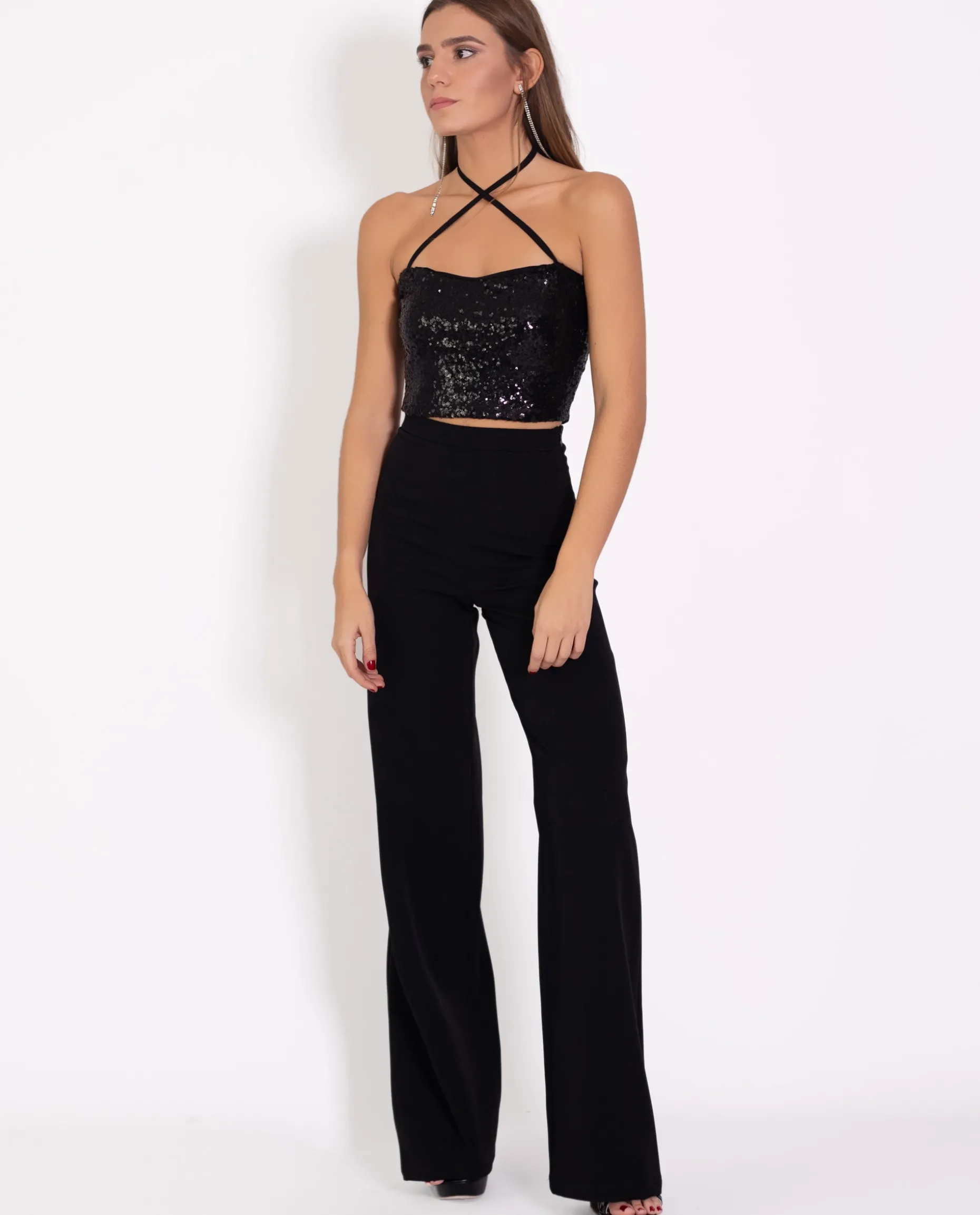 Arrasarás en tu próxima fiesta con este top negro de lentejuelas sin mangas. El escote es increíble, con los tirantes cruzados que queda completamente acoplados gracias a su lazada en el cuello. Es un top apto para las más atrevidas, con la espalda completamente descubierta. Lo mejor de este diseño es que al estar confeccionado en lentejuelas negra las combinaciones son infinitas. Con este top sabes que llegar pronto a casa no entra en tus planes!!๐”ฅ