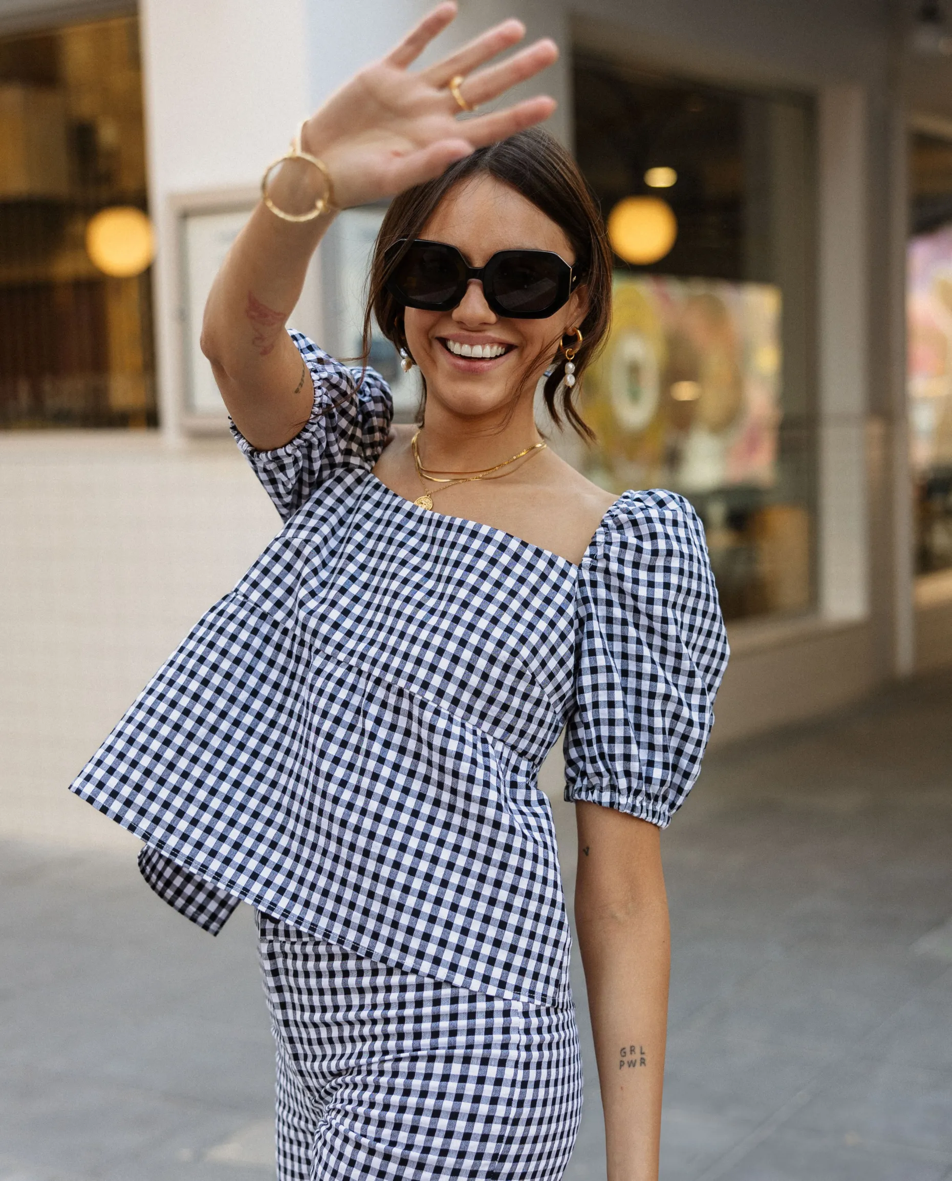 Flechazo a primera vista con este total look!๐ Inspirándonos en las últimas tendencias, hemos diseñado este conjunto de top y pantalón para acompañarte en todos tus planes de la temporada. Es cómodo, versátil y con él siempre irás perfecta. Se compone de una blusa con estampado vichy y mangas engomadas al hombro, y un pantalón de corte recto con talle alto. La blusa tiene el escote recto y un pequeño volante en el bajo, así que favorece muchísimo. Lleva el detalle de lazadas en la espalda como tanto os gusta!