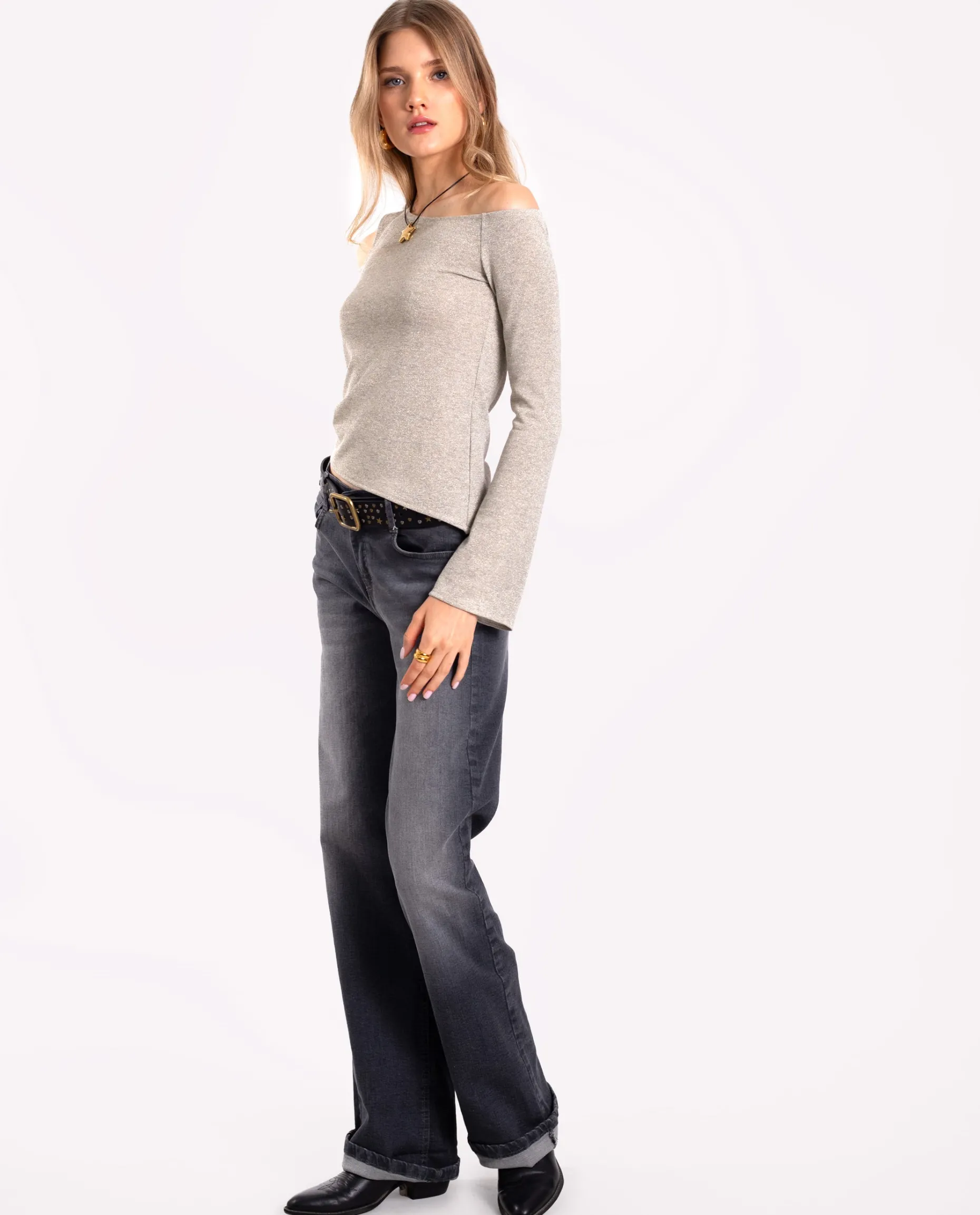 Este top es una de nuestras piezas favoritas por su versatilidad, perfecto tanto para el día a día como para eventos especiales. Confeccionado en punto canalé elástico con mucho brillo, destaca por su diseño entallado que favorece la silueta sin perder comodidad. Tiene el escote asimétrico con un elegante cut out en el hombro derecho y las mangas ligeramente acampanadas. ¡Consigue el total look con unos vaqueros, accesorios dorados y zapatillas!