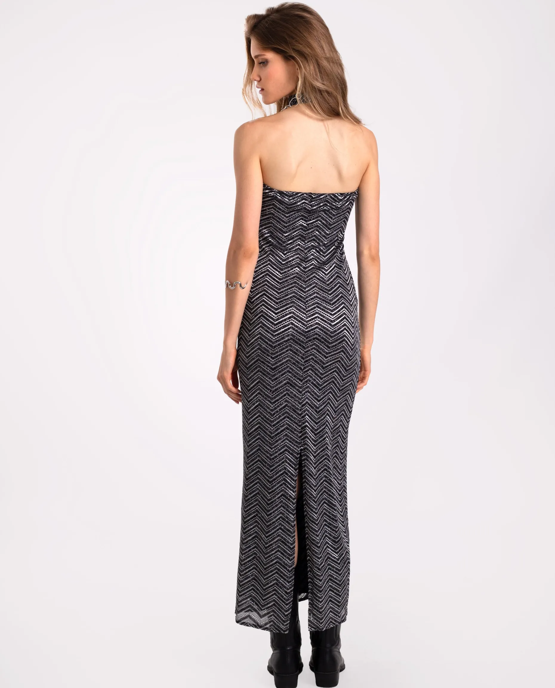 El vestido de fiesta con el que serás el centro de atención. Por su diseño y tejido es uno de los más especiales de la colección, elástico con estampado zigzag y mucho brillo. Queda totalmente entallado, con forro interior para un ajuste perfecto. Lleva un fular al tono y lo hemos diseño con escote palabra de honor y una abertura en la falda para que lo lleves muy cómodo. Hazte con EL vestido de la temporada.๐’ซ