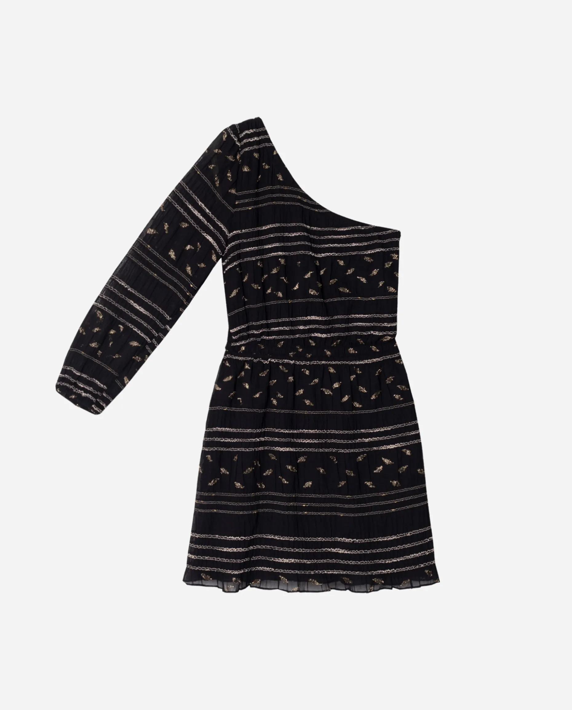 Tienes delante uno de los vestidos más ideales para llevar estas fiestas!!๐Confeccionado en un tejido de gasa con un poco de brillo y estampado étnico. Lo hemos diseñado con el escote asimétrico y la manga ligeramente abullonada, con una cintura elástica para que se adapte a tu silueta. El detalle de los brillos en dorado hace que sea un vestido aún más especial. Hazte con él antes de que las tallas vuelen!