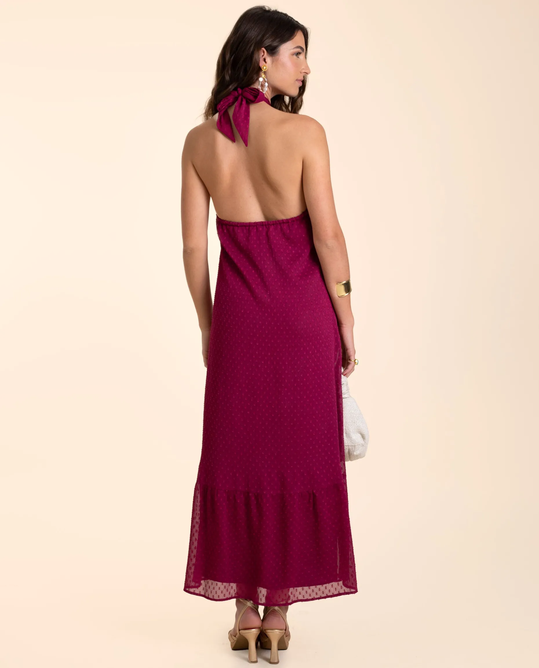 Uno de los vestidos de invitada más especiales para arrasar en cualquier evento.๐El tejido plumeti es ideal, con pequeños puntos en relieve y un nudo en el escote que favorece mucho. Imagínatelo morena! Tiene la espalda descubierta y un volante en el bajo para que tenga mucho movimiento al caminar. Es el vestido perfecto para combinar de mil formas y llevar en diferentes ocasiones, ya sea con una sandalia de tacón o una sandalia plana para verano.