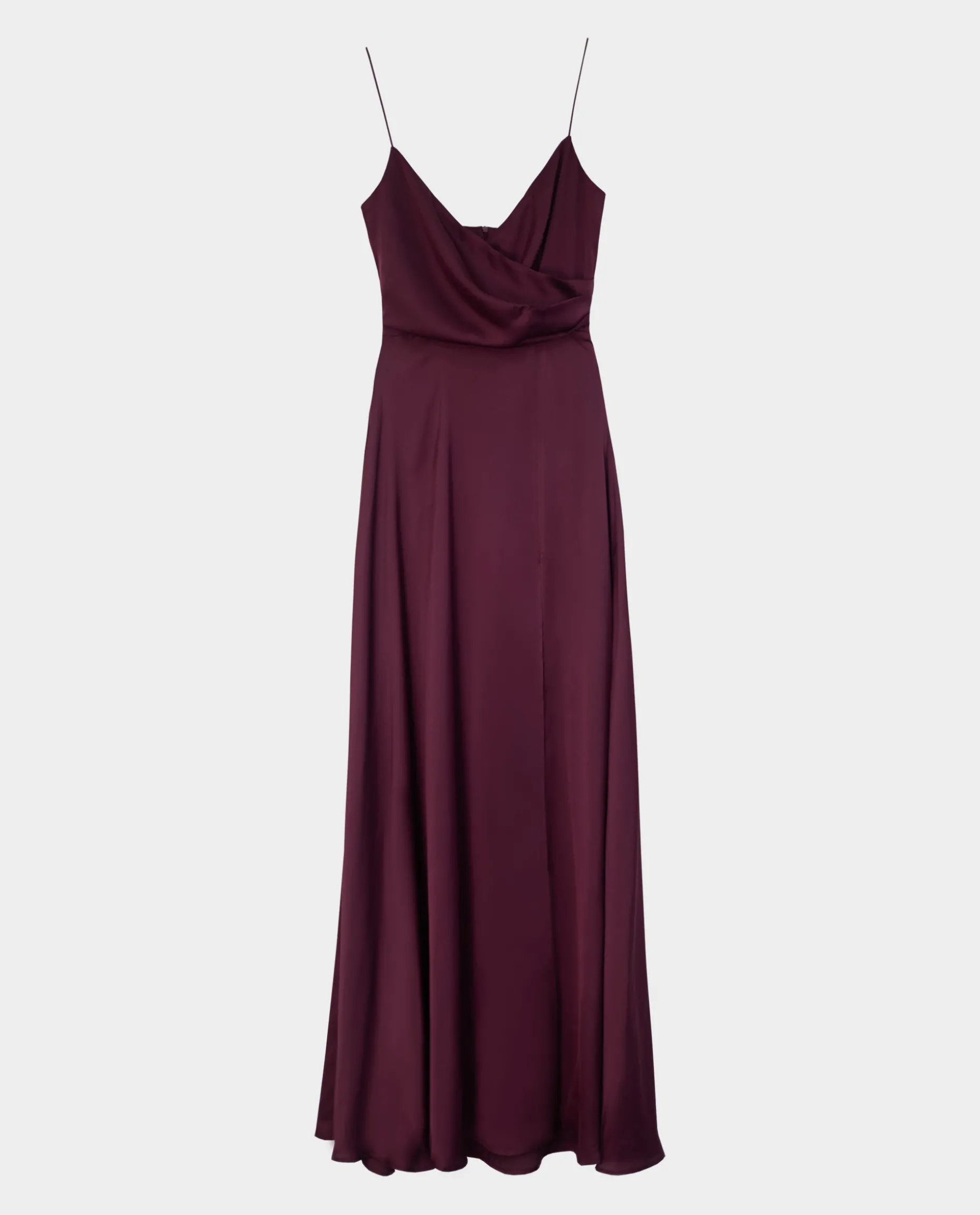 Si tienes un evento muy especial en el que buscas ir de largo, este vestido princesa es para ti. El diseño es muy especial, de tirantes con el escote cruzado para un efecto drapeado que favorece la silueta. El vestido destaca por su maxi falda con la abertura lateral, increíble lo bien que sienta. Está confeccionado en un tejido satén burdeos, el color para acertar 100% en eventos. Prueba a combinarlo con una de nuestras capas de invitada, nos encanta el resultado! Con este vestido no necesitarás más que unos pendientes largos y un bolso de mano.