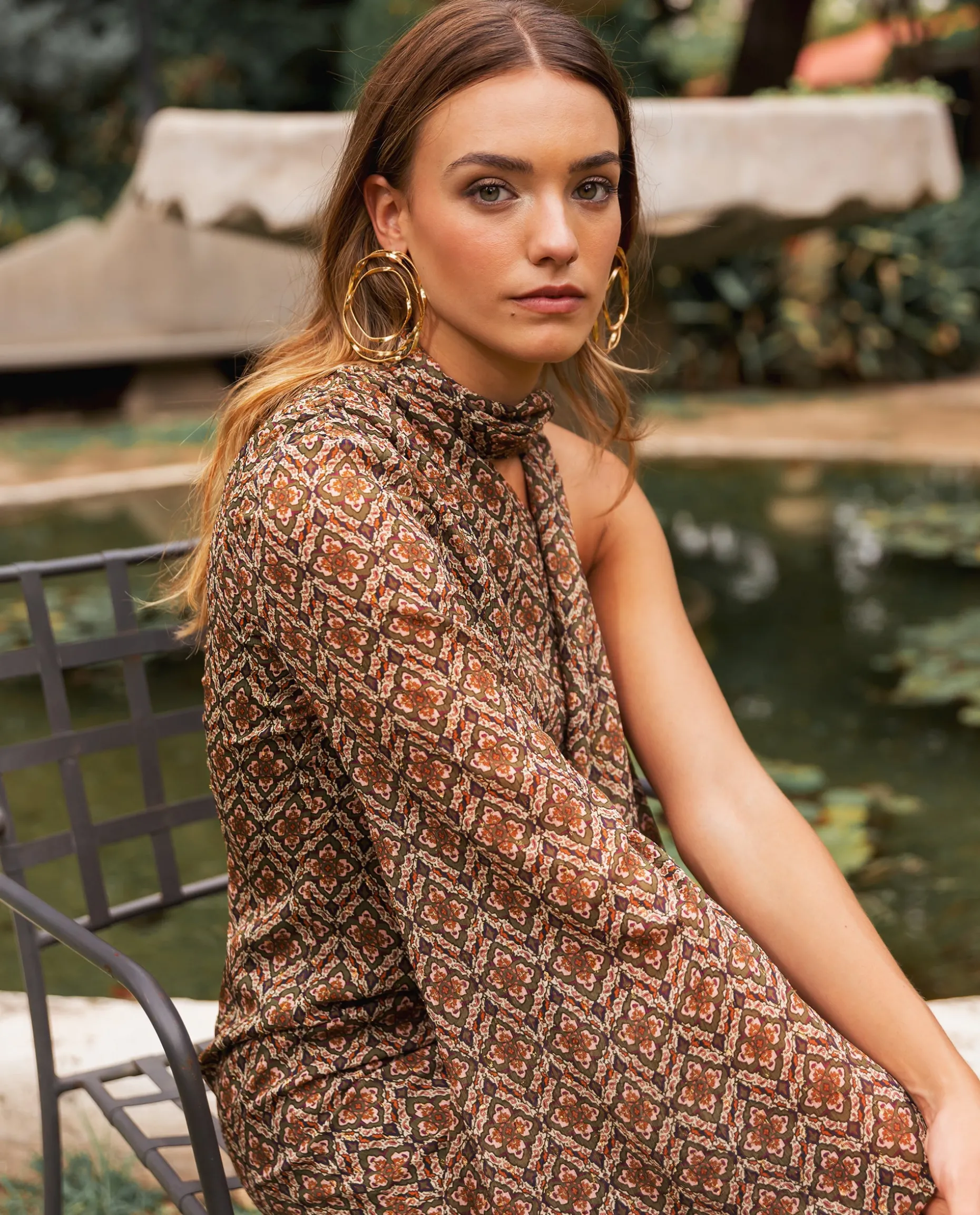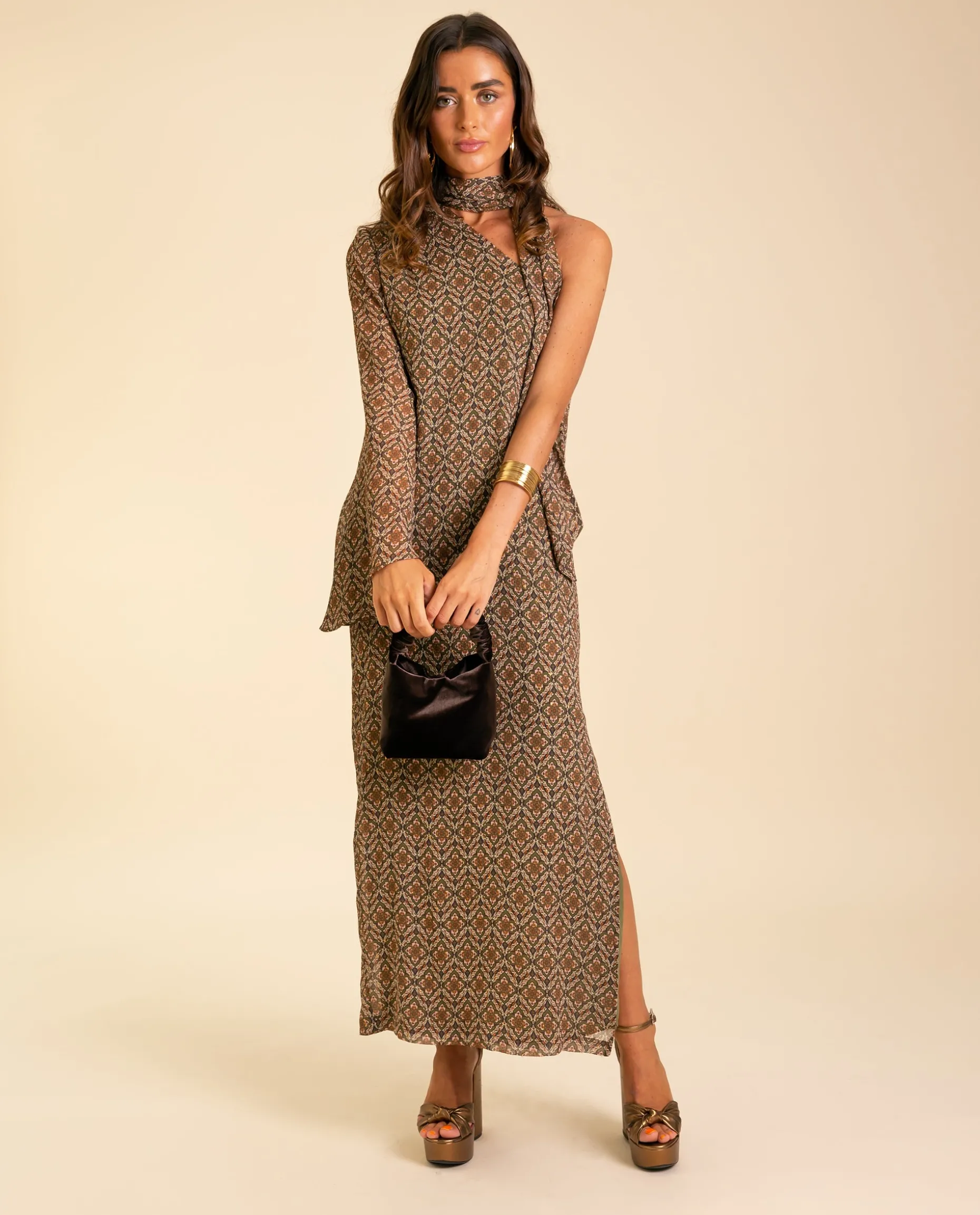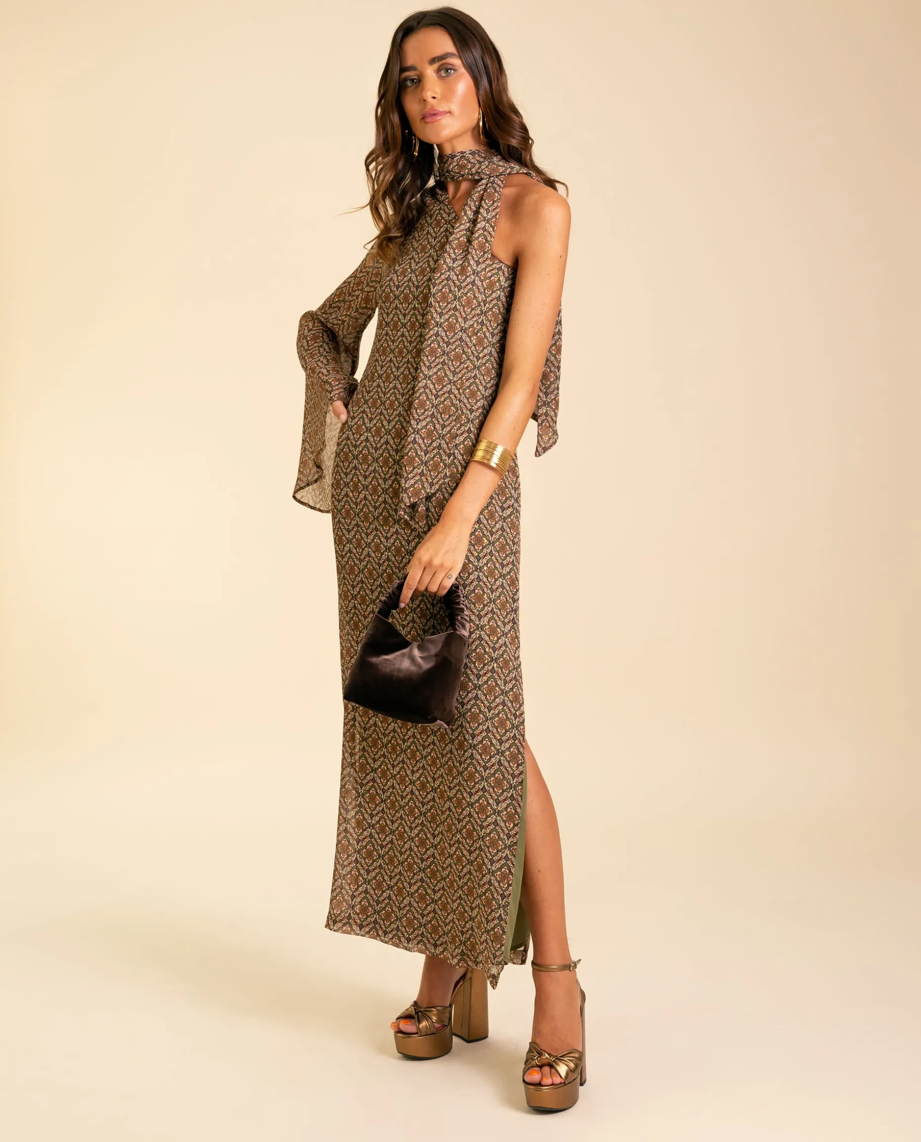 El diseño de este vestido midi estampado destaca por su escote asimétrico con la lazada al cuello, un toque elegante y en tendencia que sienta increíble! Este vestido favorece a todo tipo de siluetas por su corte ligeramente entallado, con un escote asimétrico y de una sola manga larga semi transparente. Lleva el detalle de una abertura lateral en la pierna, un acierto para ir muy cómoda y lucir zapato. La lazada al cuello es una de las tendencias de la temporada y su estampado geométrico combina las tonalidades perfectas para esta temporada. Sin duda, un acierto para llevar en tu próximo evento!๐ค๐ป