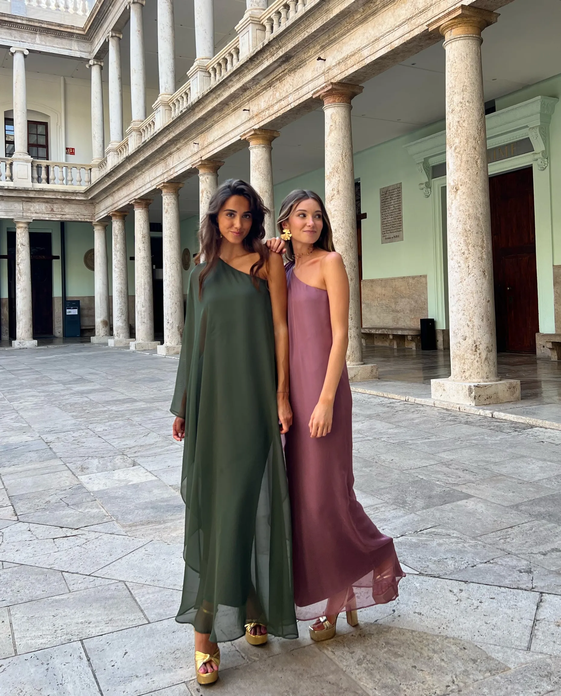 Una de las piezas más especiales de la colección de invitada por su forma, diseño y tejido. Es un vestido elegante confeccionado en doble gasa con mucho movimiento que no marca nada, lo llevarás muy cómodo a tus eventos más especiales. El efecto capa es uno de los elementos más buscados en invitadas, así que nuestro equipo de diseño lo ha incorporado en forma de multiposición. Gracias a su lazada en el hombro podrás ajustar la capa y llevarla abierta como manga o tipo tirante.